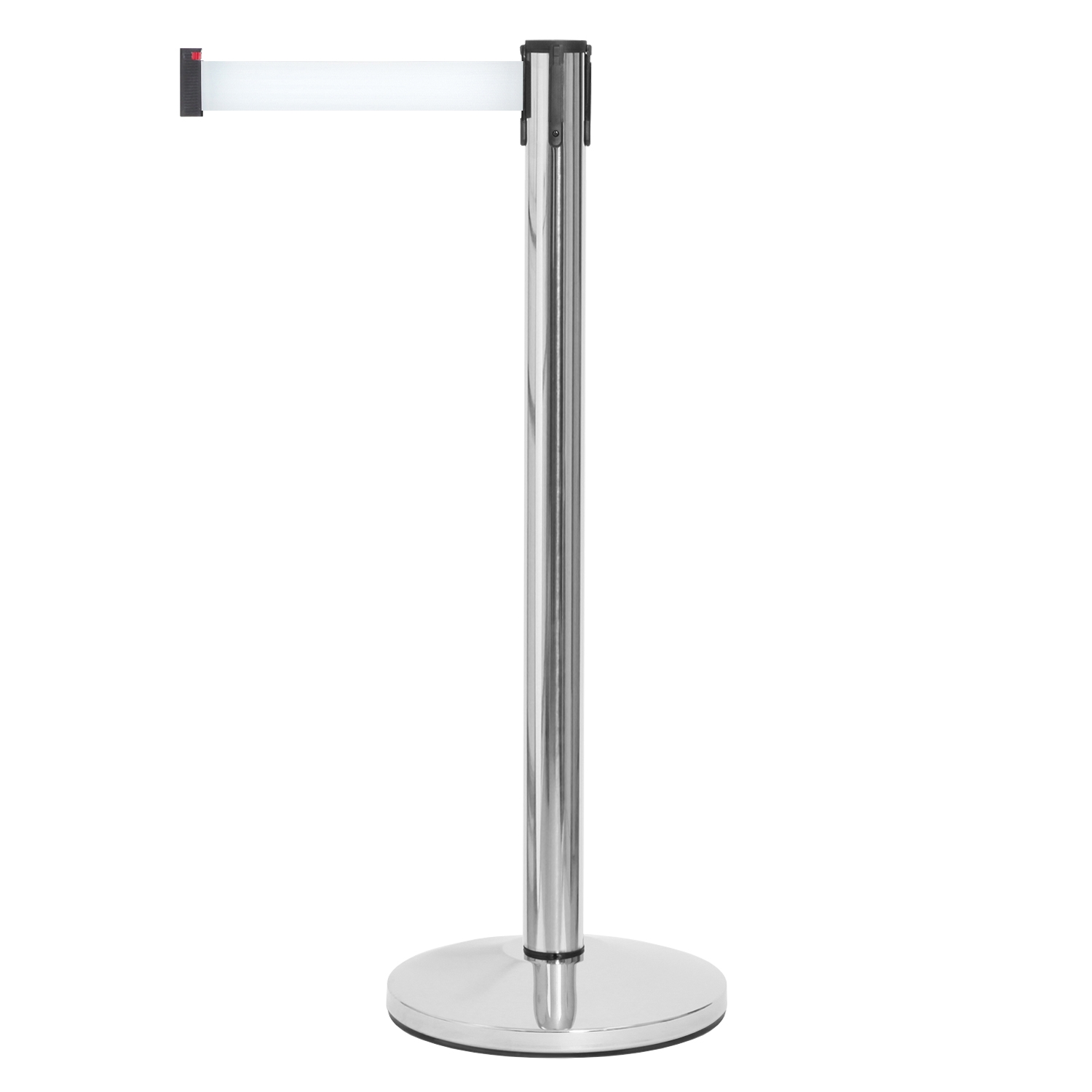 Sølv avsperringsstolpe med hvitt bånd