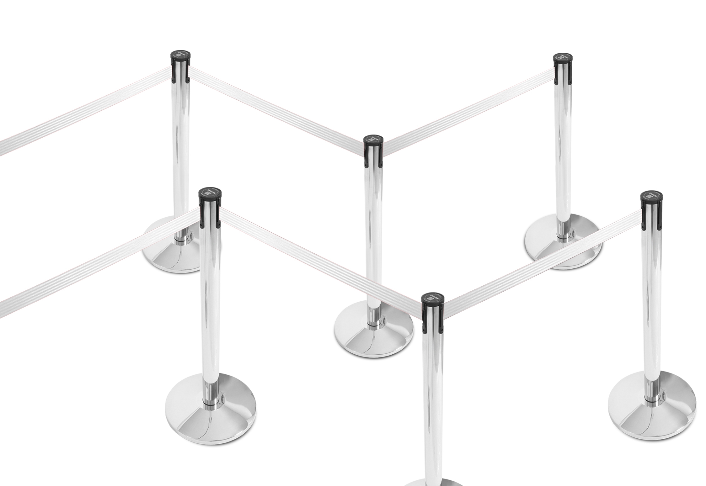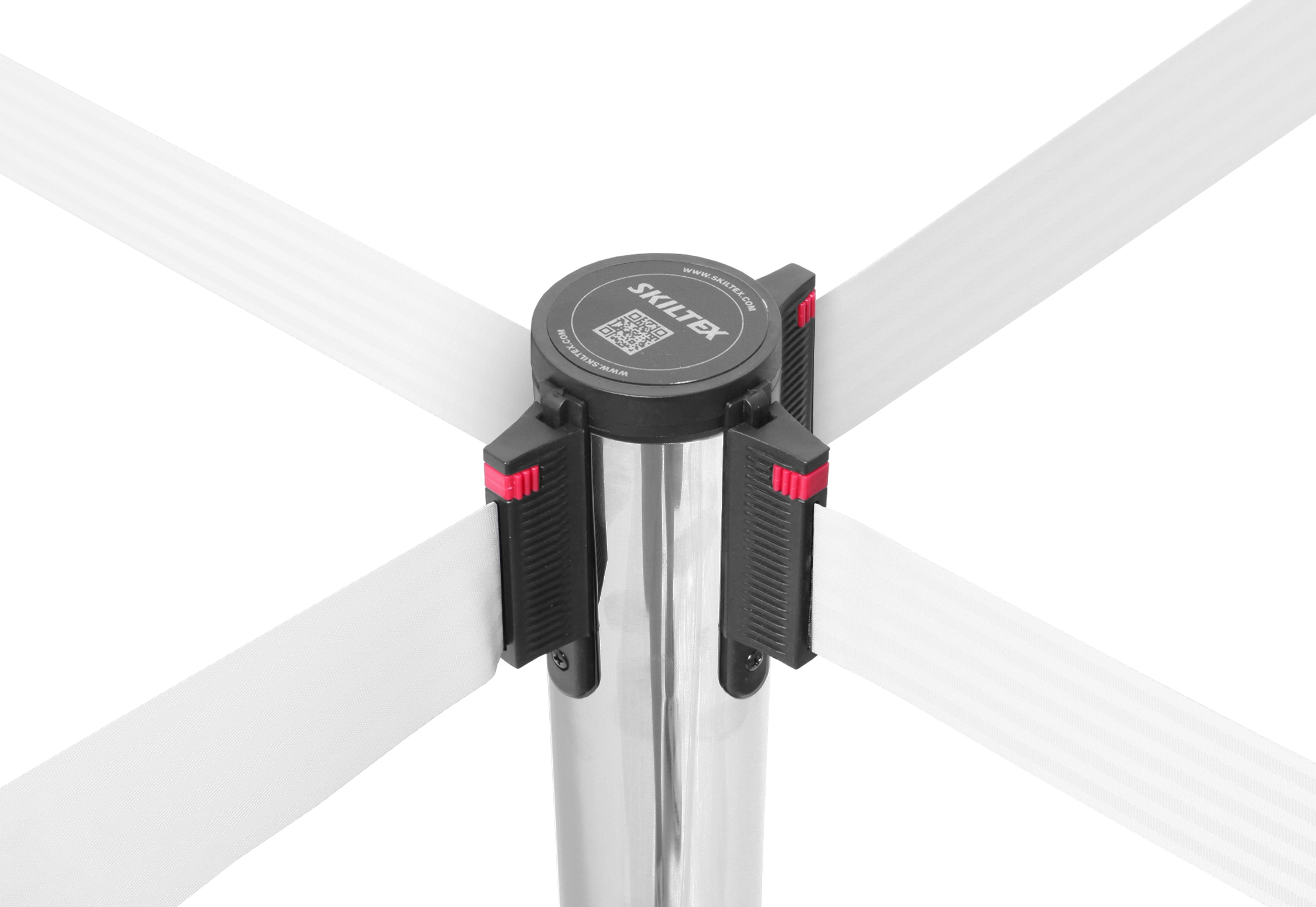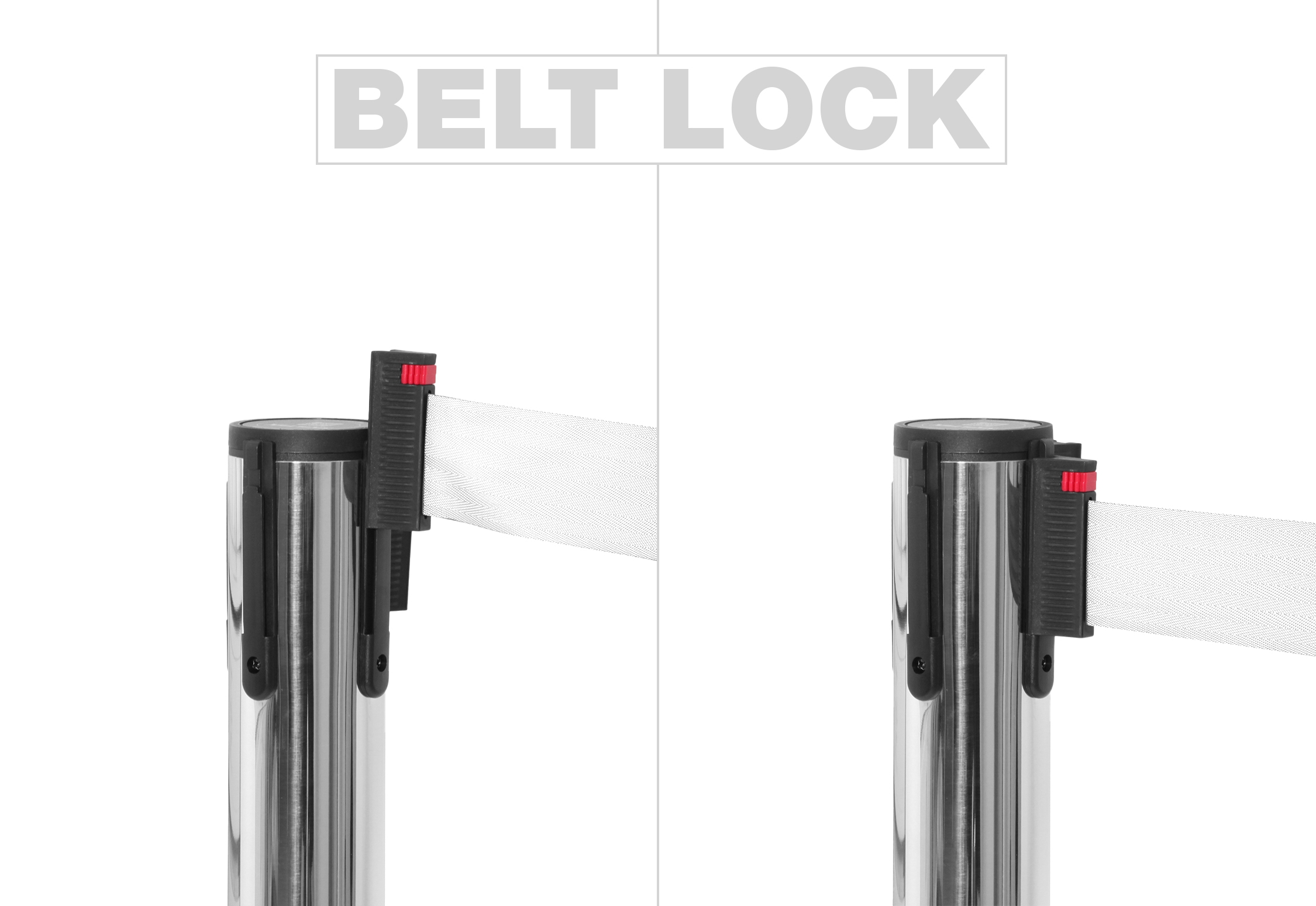 Båndene er utstyrt med en lås, som sikrer, at de sitter godt og fast på andre stolper. Skiltex avsperringsstolper har en universell bånd-lås, som passer til andre populære avsperringstolpe-brands – med garanti.