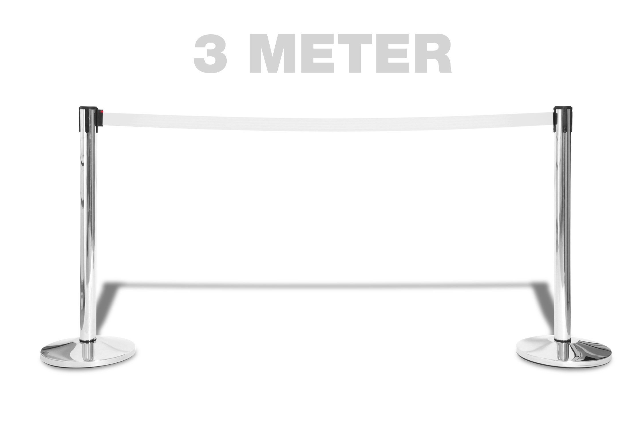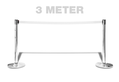 De ekstremt lange 3 meter, opptrekkelige bånd er en del lengere enn industristandarden, som er 2,3 meter. Dette betyr at med våres stolper holder det med at kjøpe 30% færre stolper enn normalt.