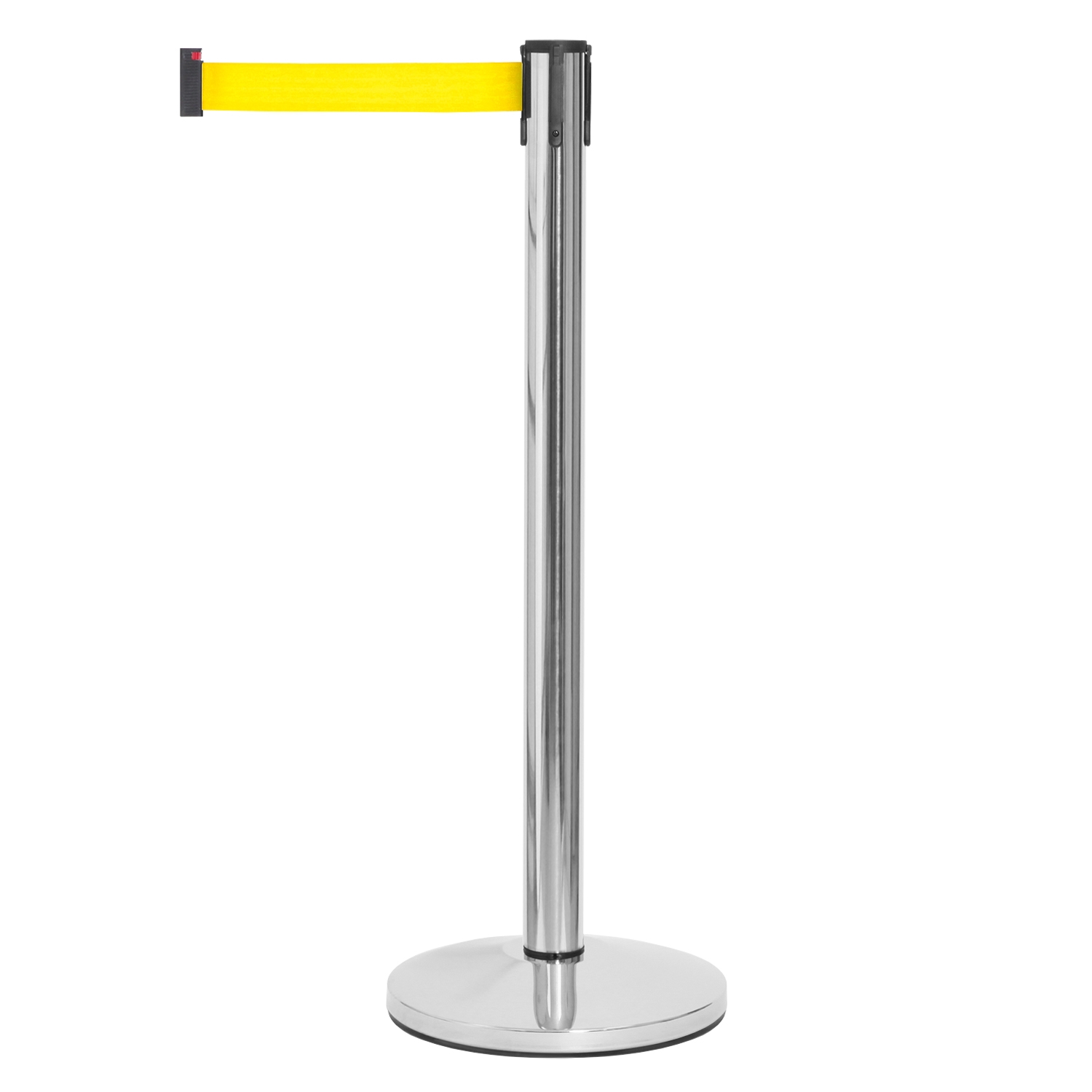 Sølv avsperringsstolpe med gult bånd