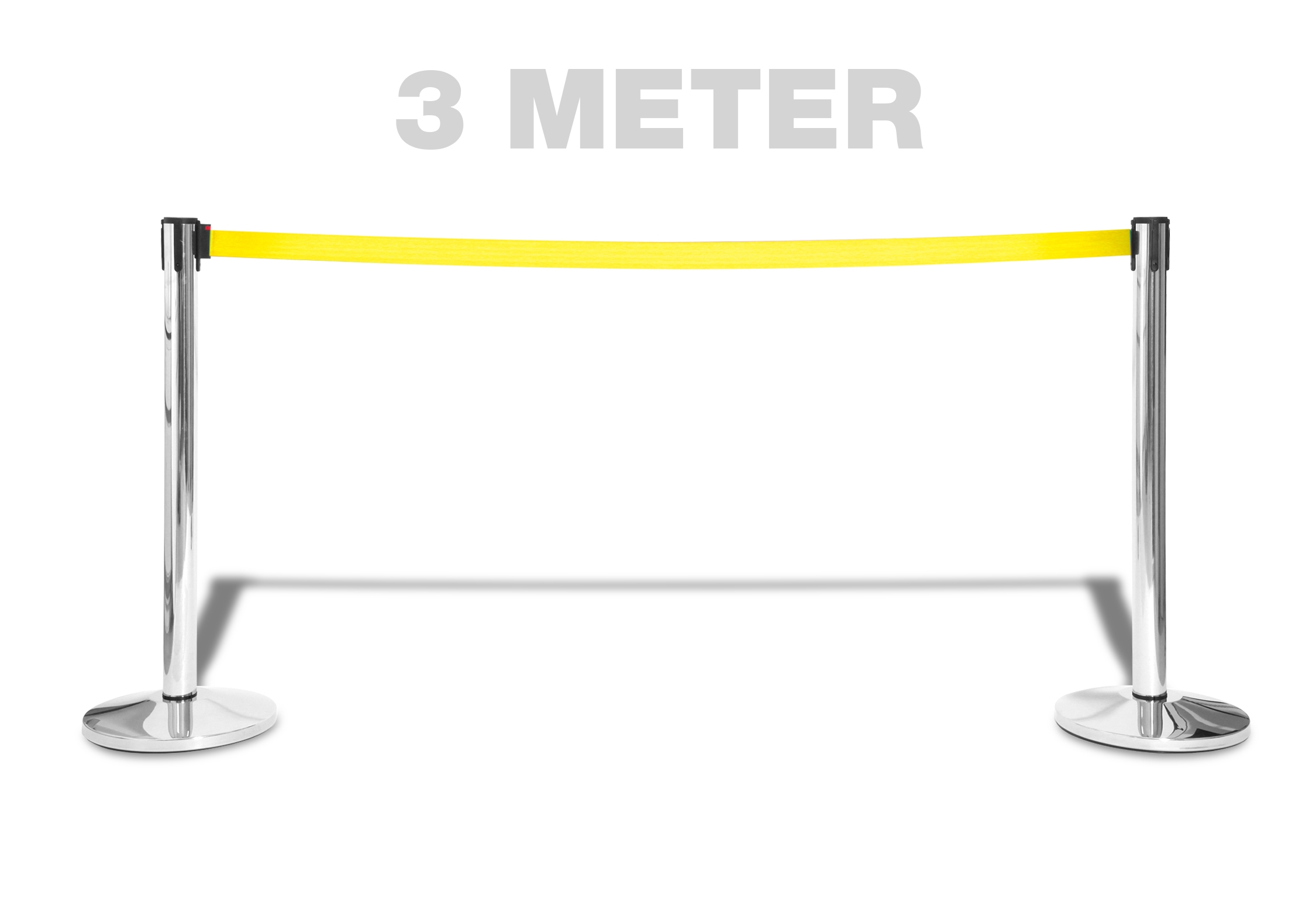 De ekstremt lange 3 meter, opptrekkelige bånd er en del lengere enn industristandarden, som er 2,3 meter. Dette betyr at med våres stolper holder det med at kjøpe 30% færre stolper enn normalt.
