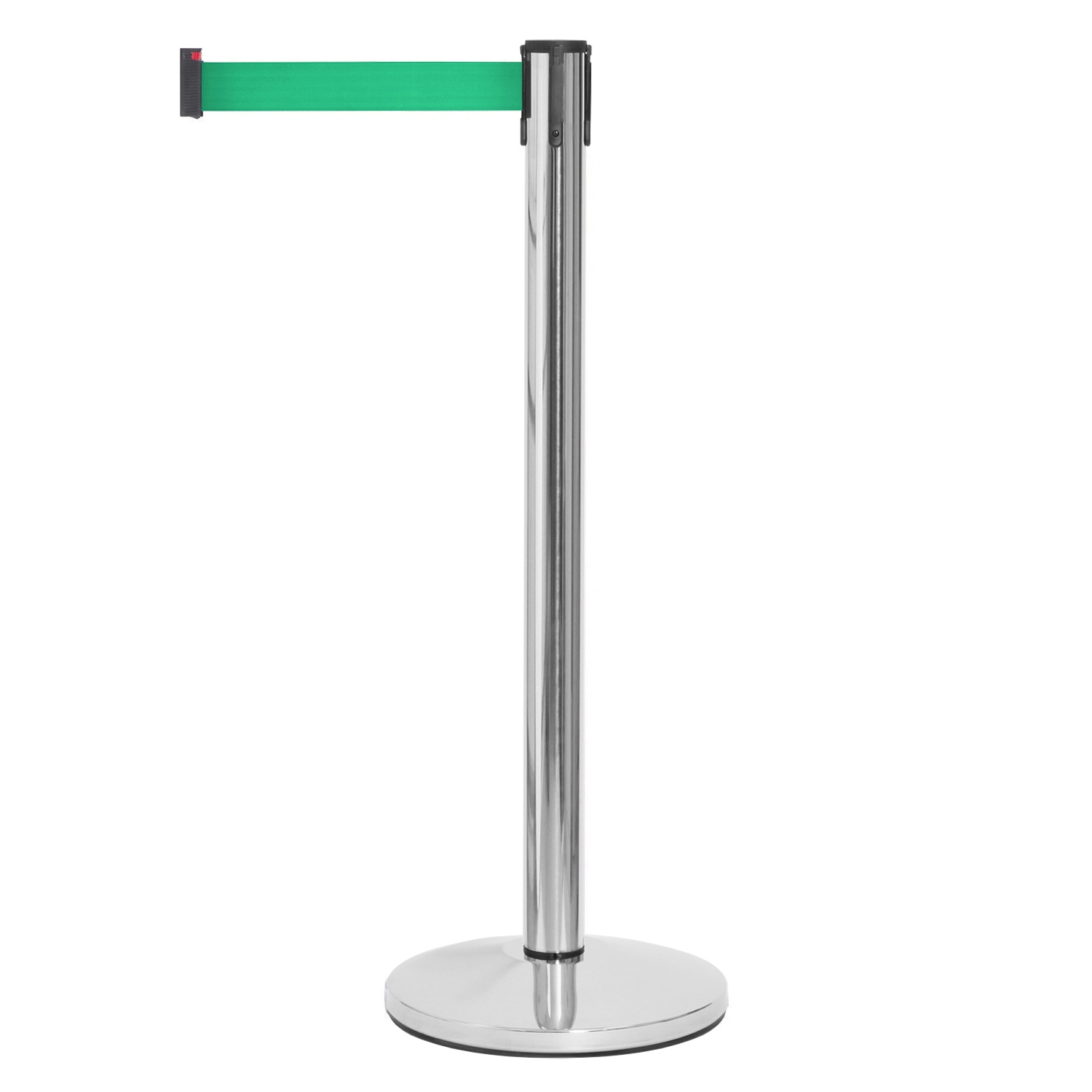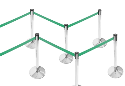 Sølv avsperringsstolper produsert i galvanisert stål med en tung og stabil betongfyllt fot med gulv beskyttelse.