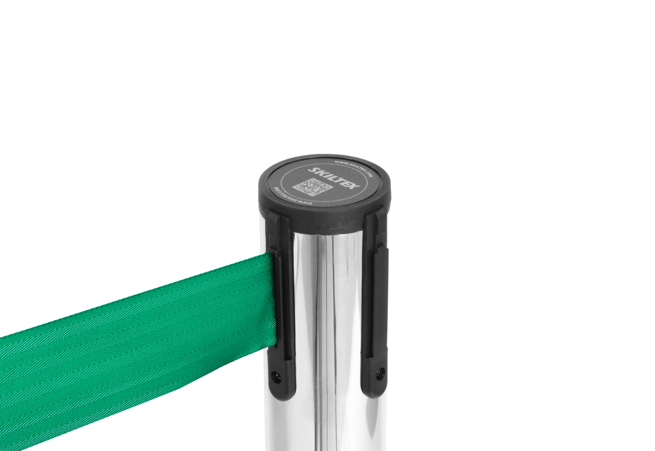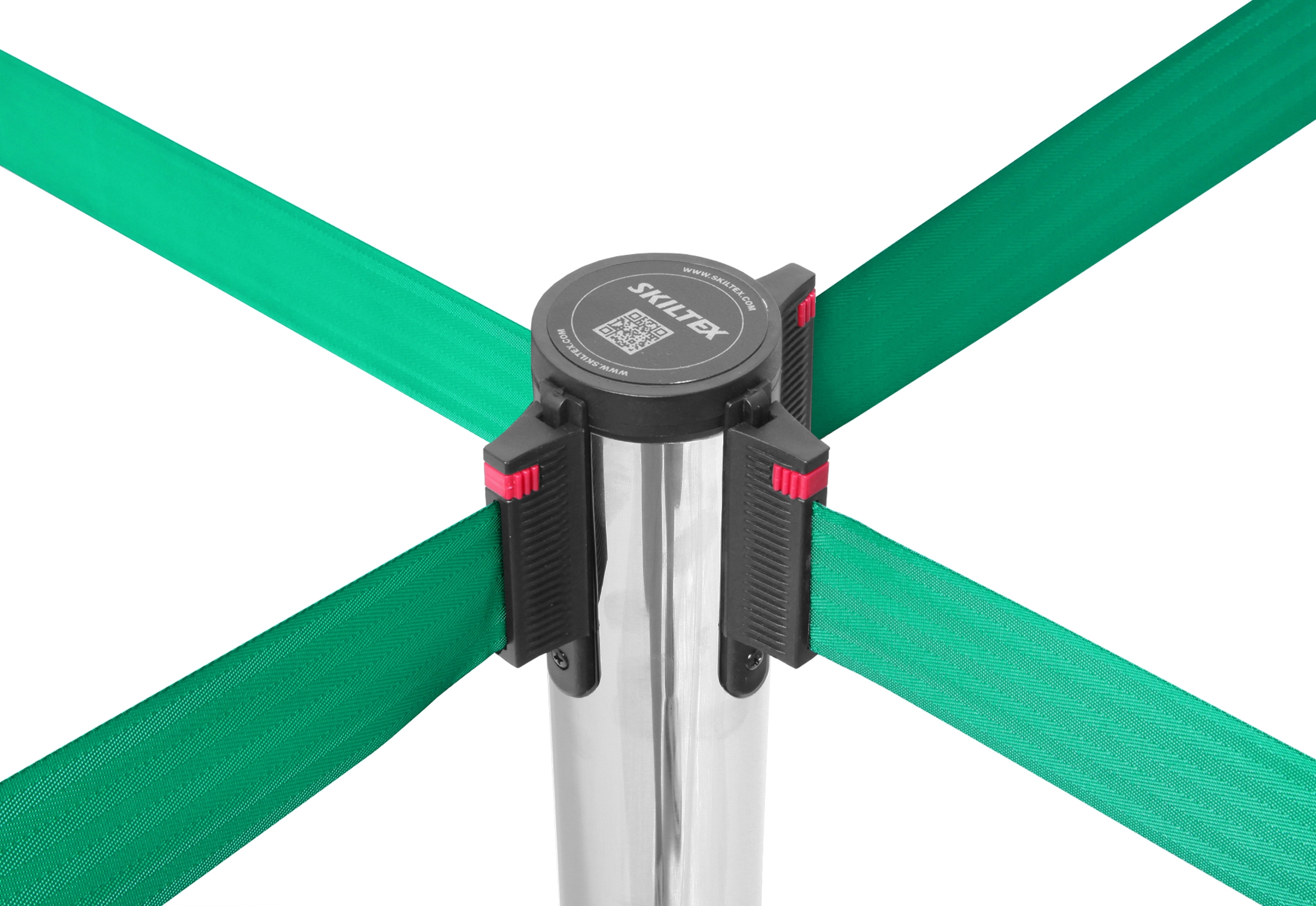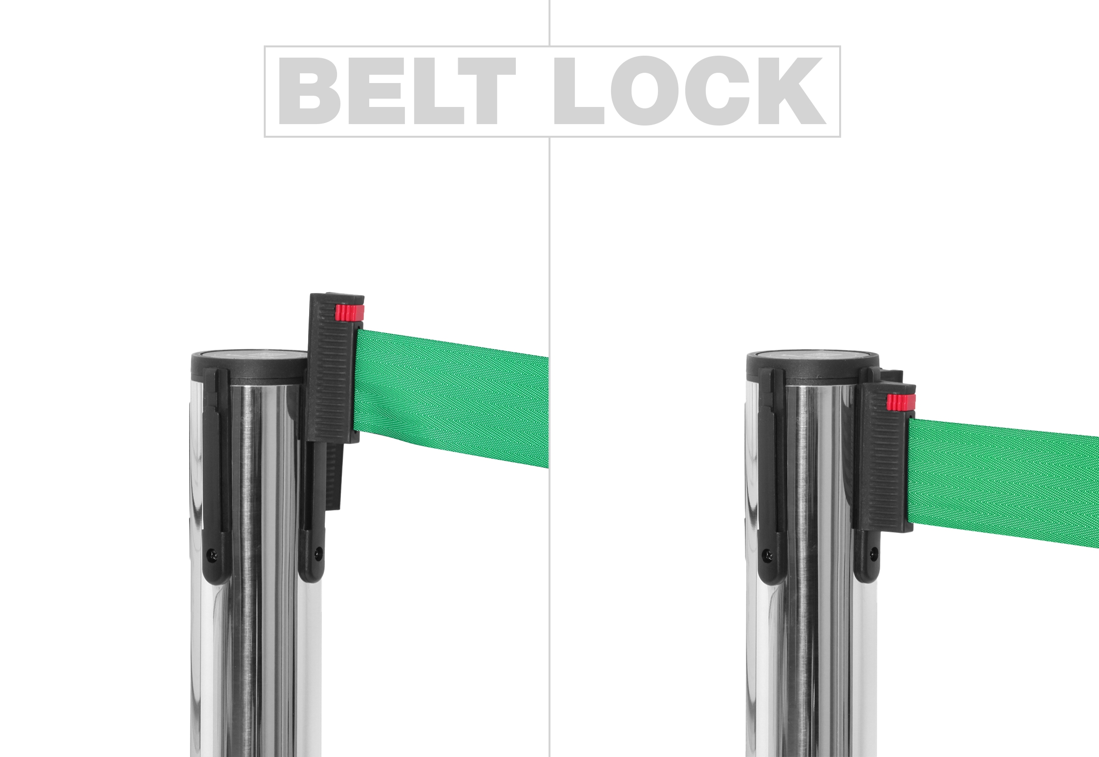Båndene er utstyrt med en lås, som sikrer, at de sitter godt og fast på andre stolper. Skiltex avsperringsstolper har en universell bånd-lås, som passer til andre populære avsperringstolpe-brands – med garanti.
