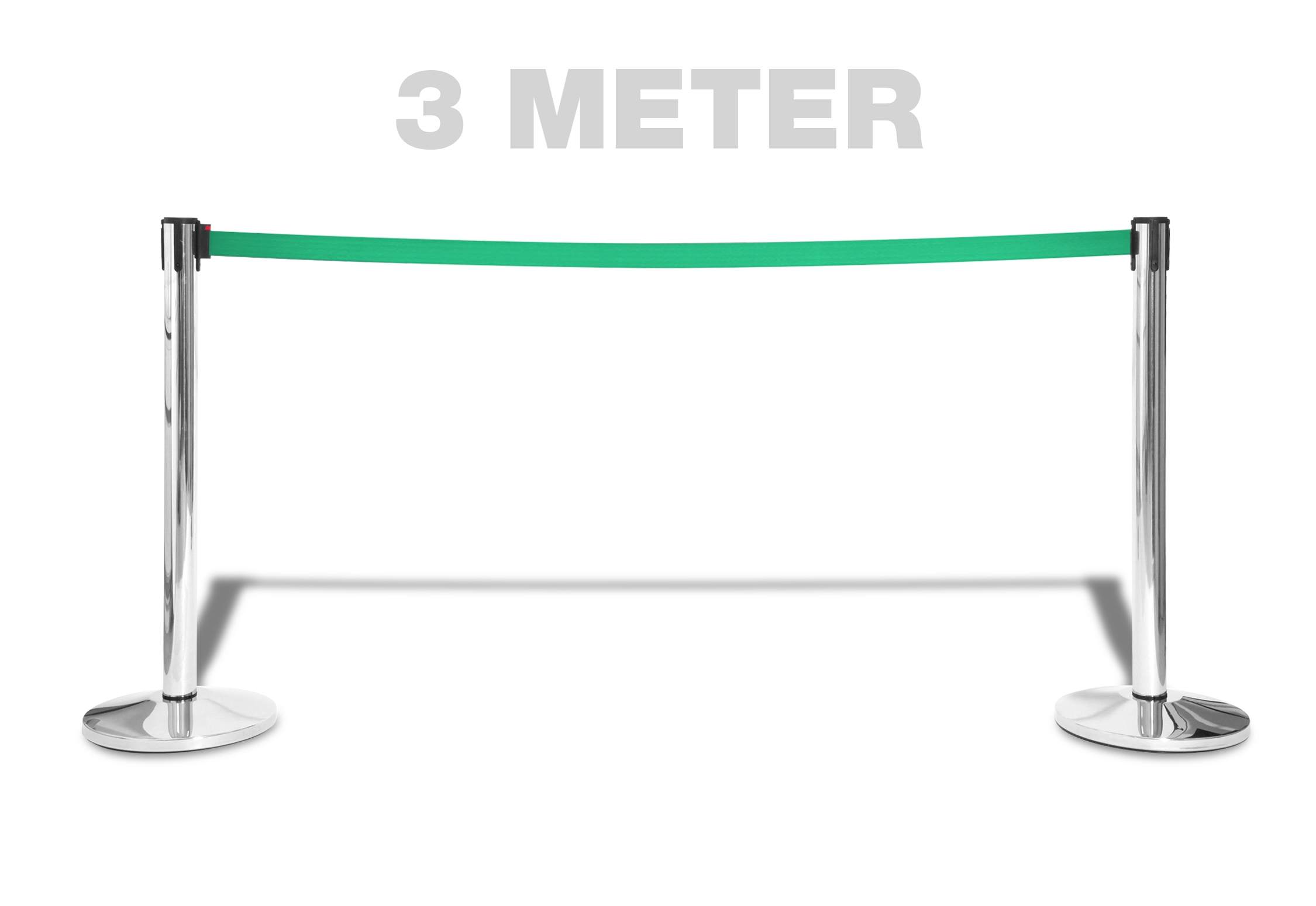 De ekstremt lange 3 meter, opptrekkelige bånd er en del lengere enn industristandarden, som er 2,3 meter. Dette betyr at med våres stolper holder det med at kjøpe 30% færre stolper enn normalt.