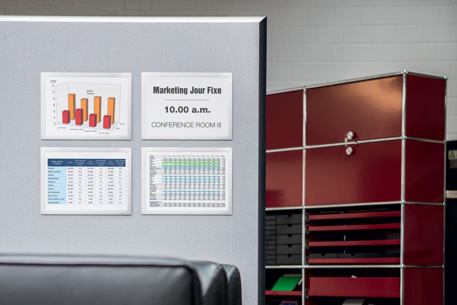• Bruksområder: for dokumenter og papirark i A4 format, f.eks. telefonlister på tekstilskilleveggen på arbeidsplassen