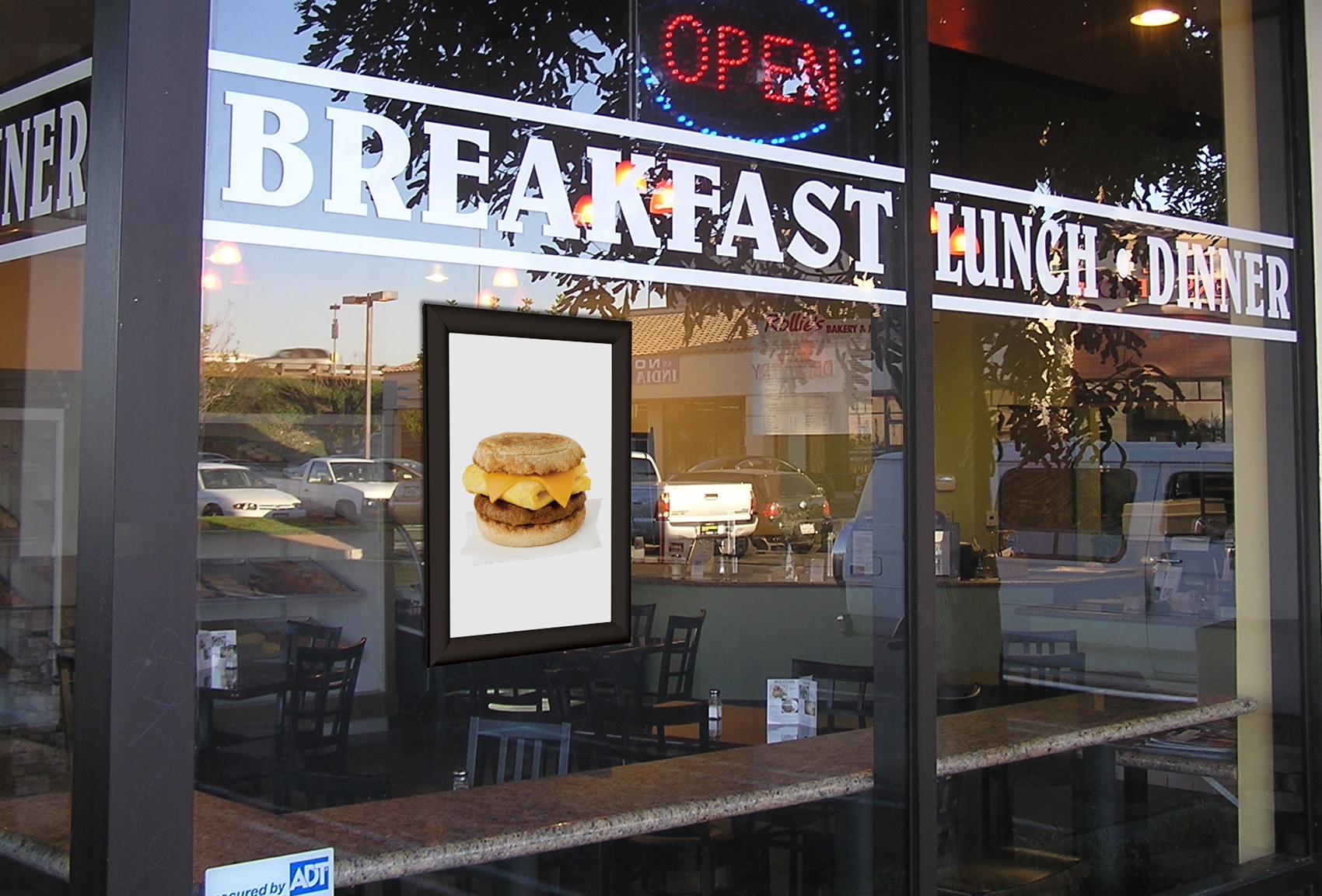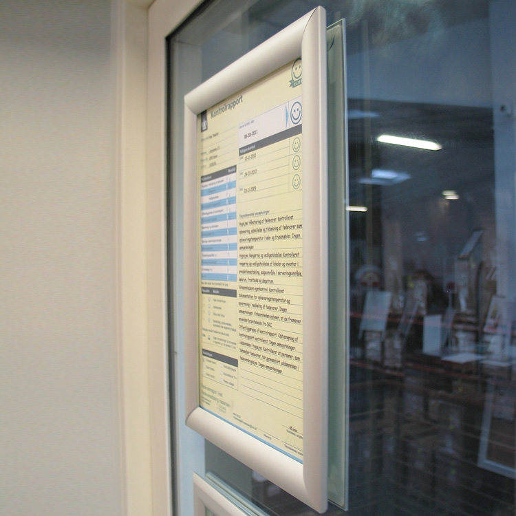 Disse sorte vindusskiltene er basert på vanlige klikkrammer med attraktive 25 mm profiler. De er modifisert for bruk på vinduer, og brukes ofte av butikker og restauranter.