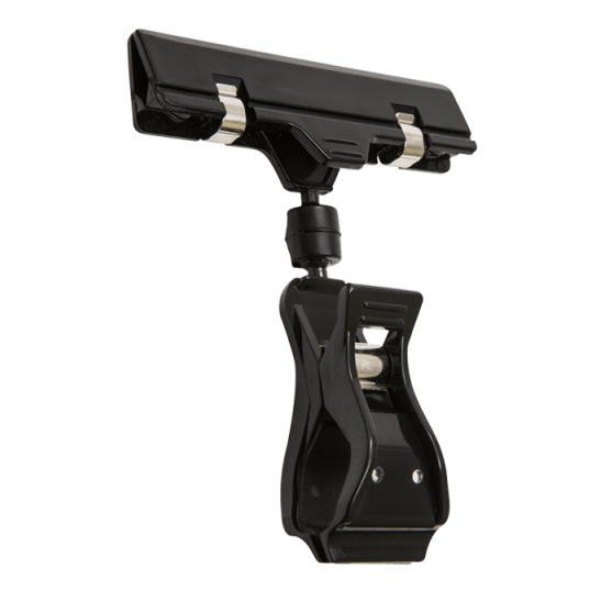 Sort fleksy 80 er en fleksibel prisklemme med kuleledd, som tilbyr utallige visningsmuligheter.