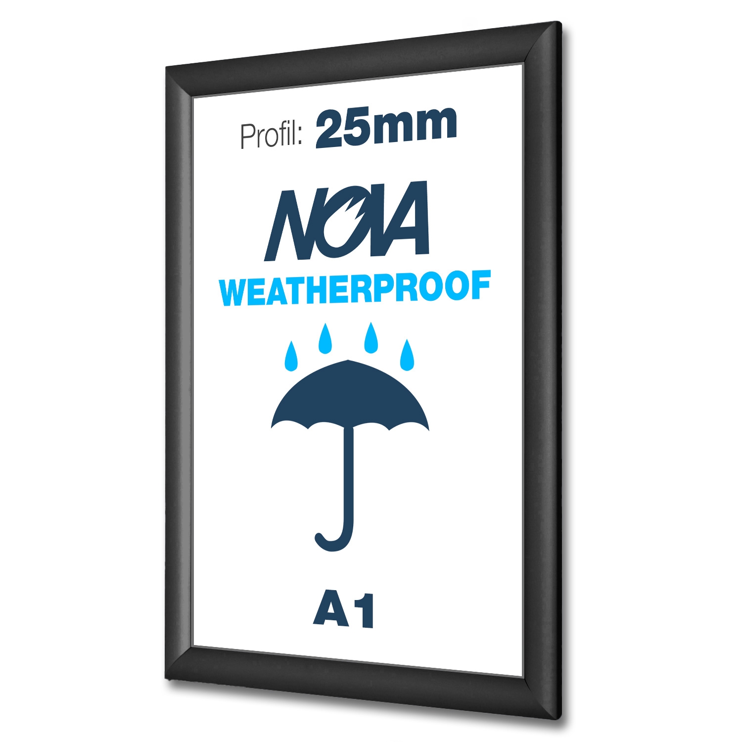 Sort vannsikker Nova klikkramme med 25mm profil - A1