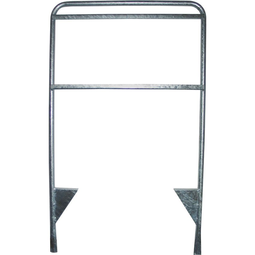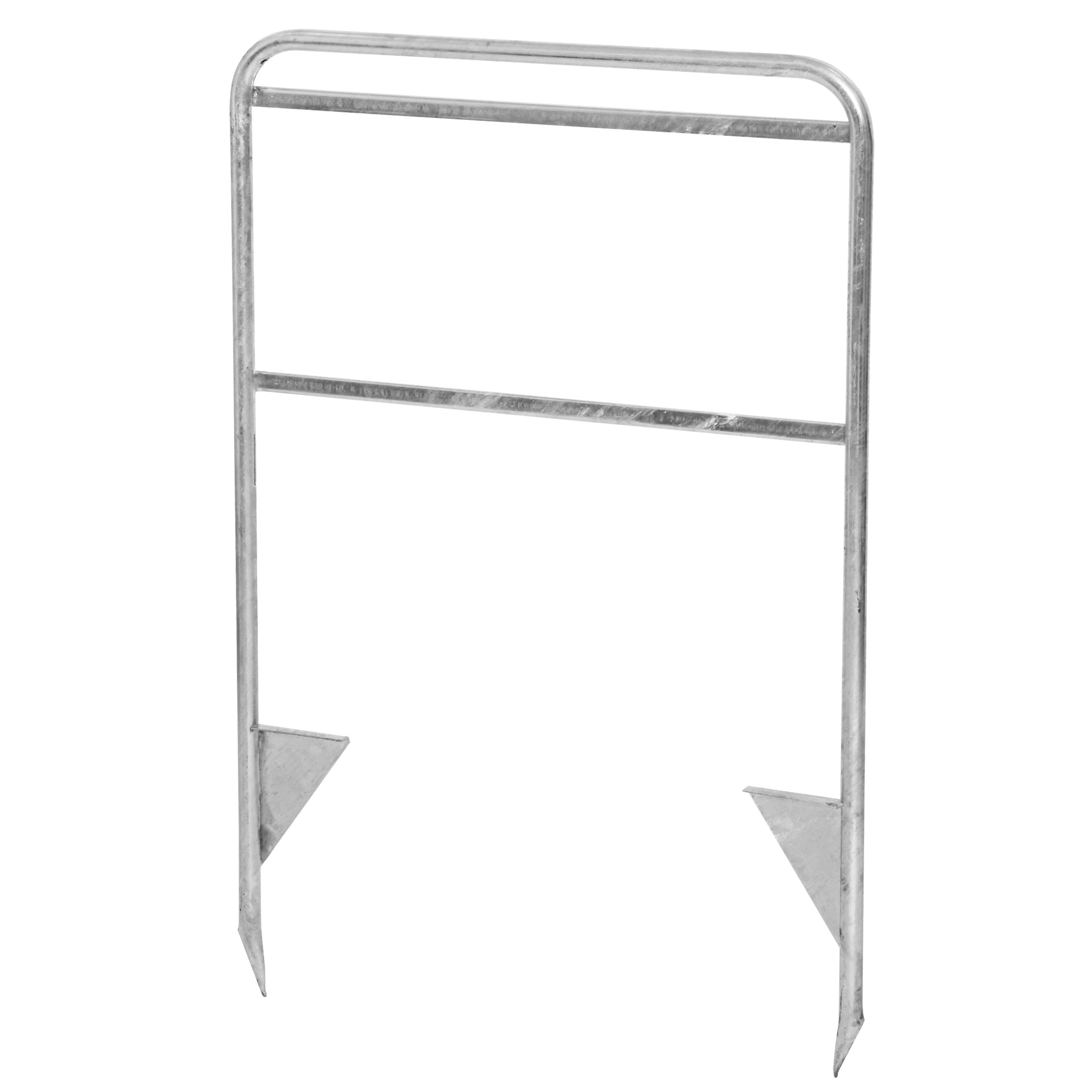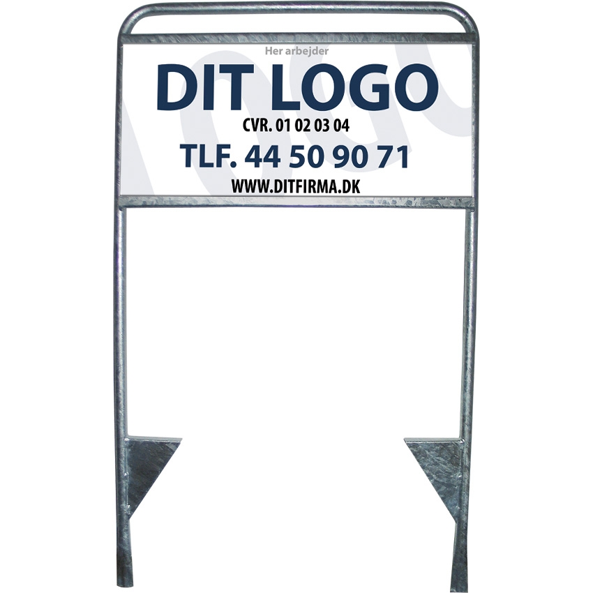 Robust skiltstativ for byggeplass uten logoplate, laget av 22 mm galvanisert rustfritt stål – klart til å stikkes i bakken.