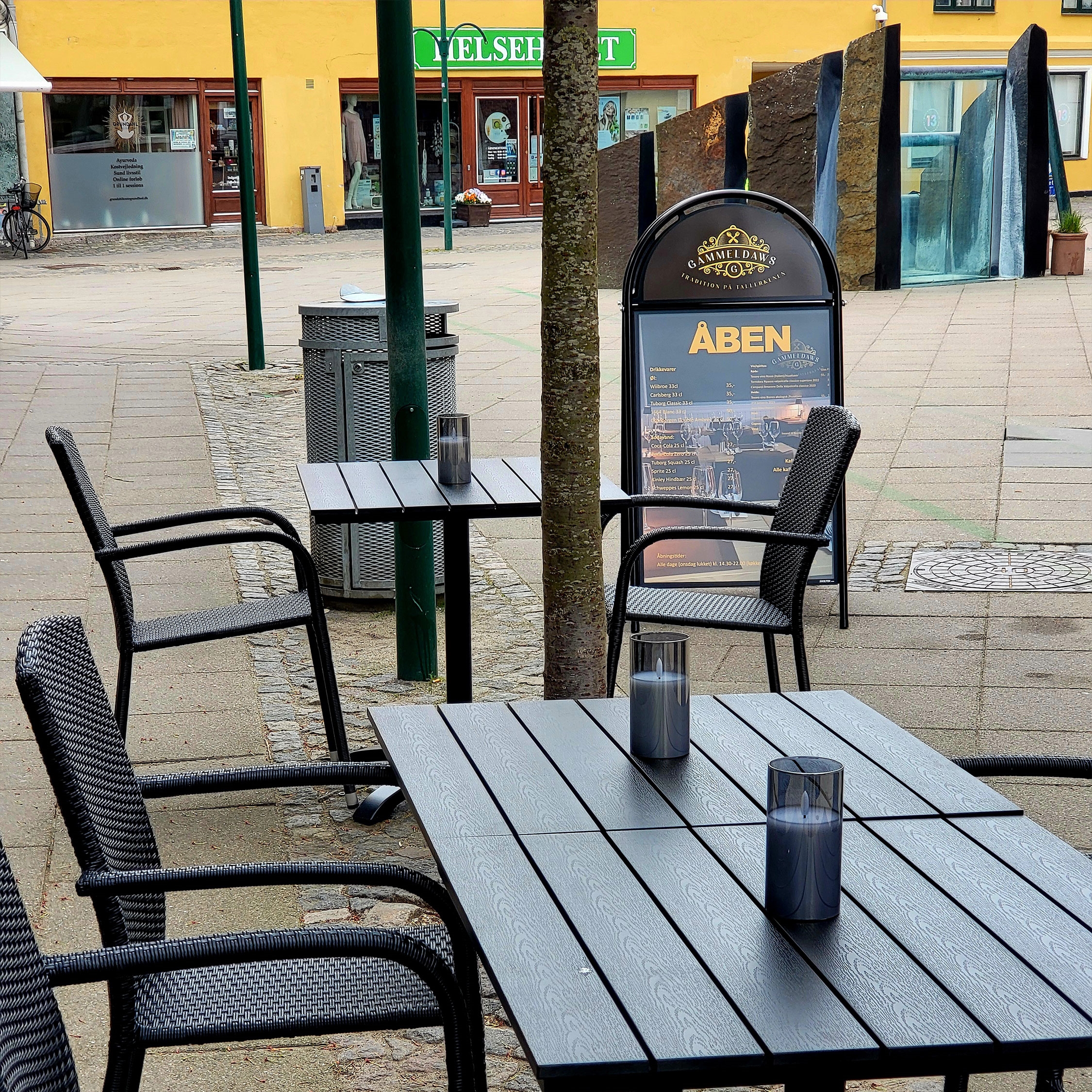 Merk at skiltenes bakplater er svartlakkerte. Vekten er bastant, så skiltene står stabilt, men de er likevel ikke tyngre enn at de enkelt kan flyttes og transporteres.