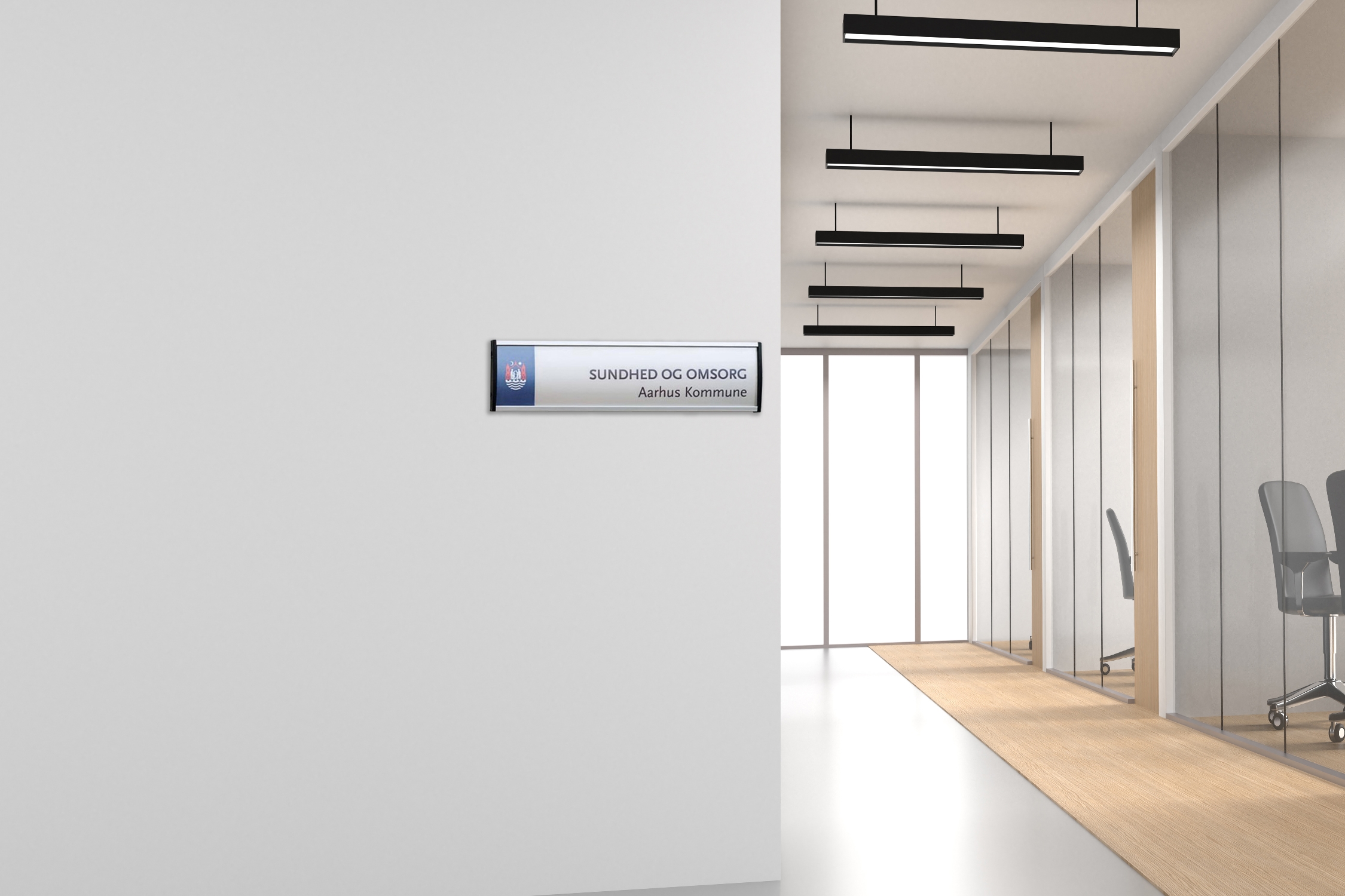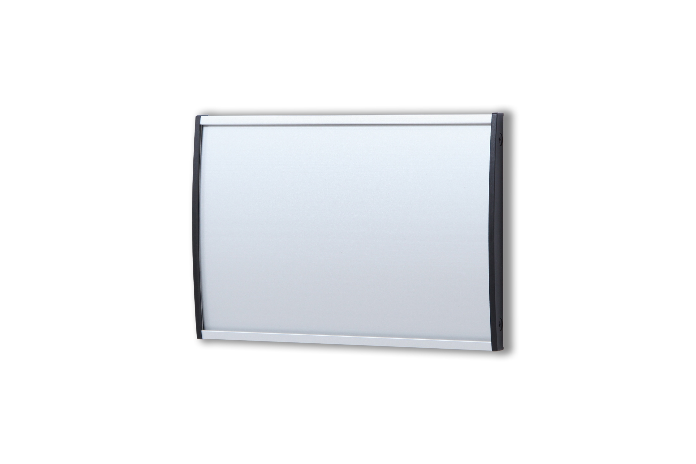 Skiltene er produsert av sølv anodisert/eloxeret aluminium med lette kurver og elegante svarte endestykker som gir en premium og profesjonell look.