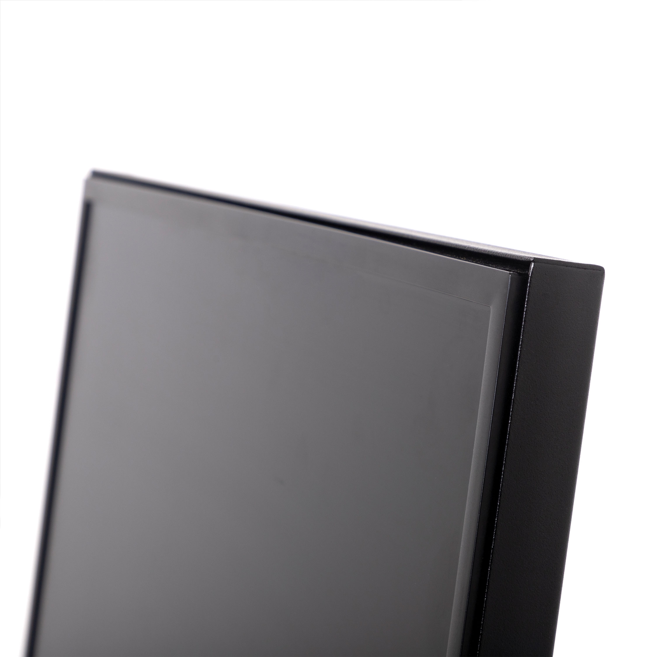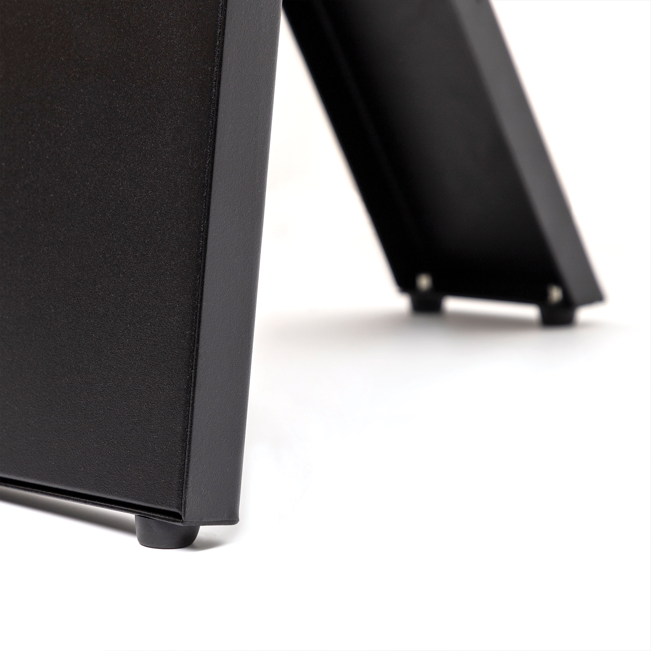 Elegant digitalt A-skilt med en ultratynn profil på kun 25 mm, som integreres vakkert i ethvert miljø. Den robuste stålkonstruksjonen er belagt med en svart, fingeravtrykkavvisende lakk som sikrer et eksklusivt uttrykk. A-skiltet er lett å transportere takket være den sammenleggbare foten.