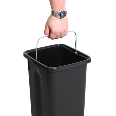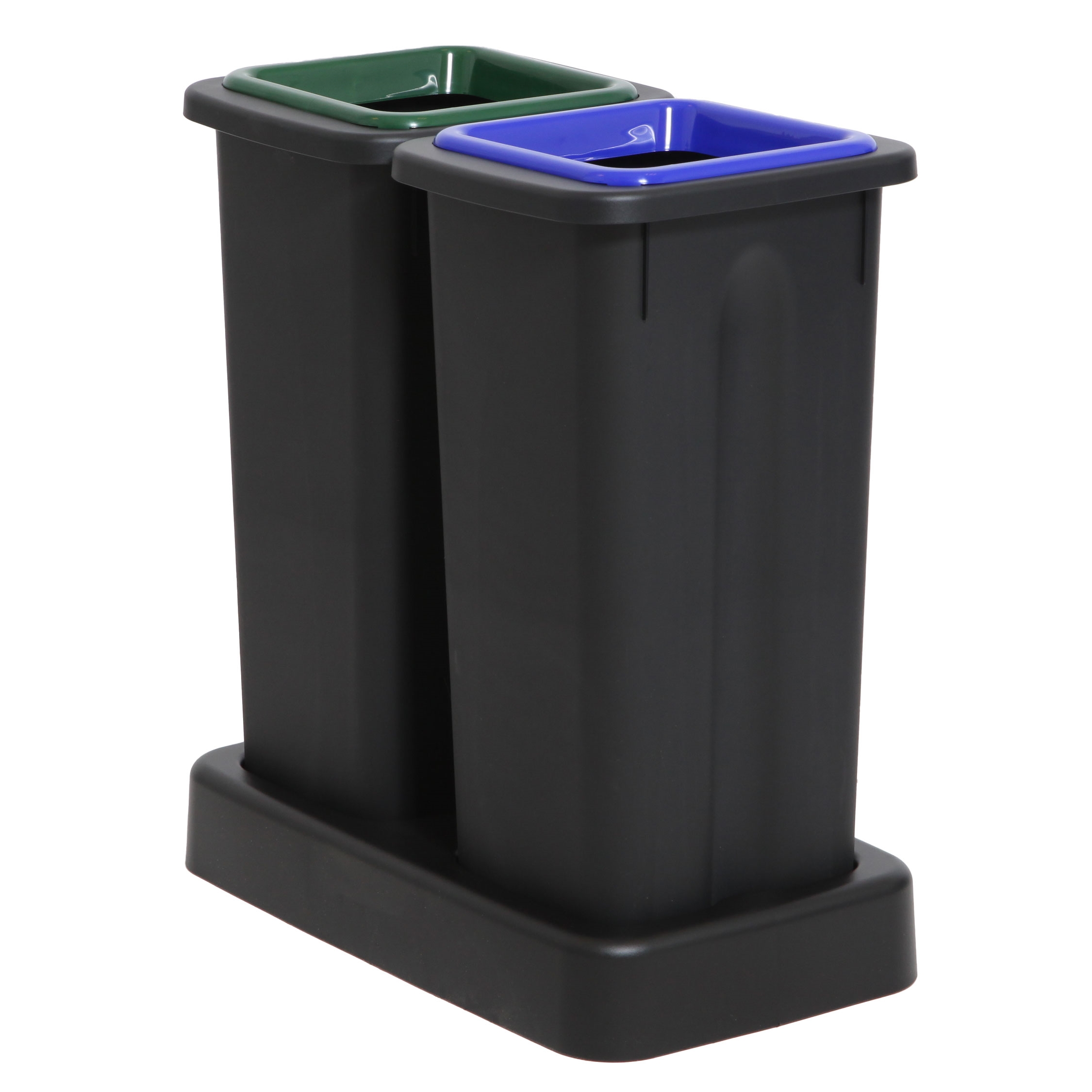 Dette sorteringssystem er utført i svart, kraftig, 100% gjenbrukt plastik med en kapasitet på 2x20l og med lokk i blå og grønn.
