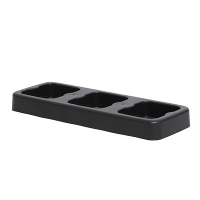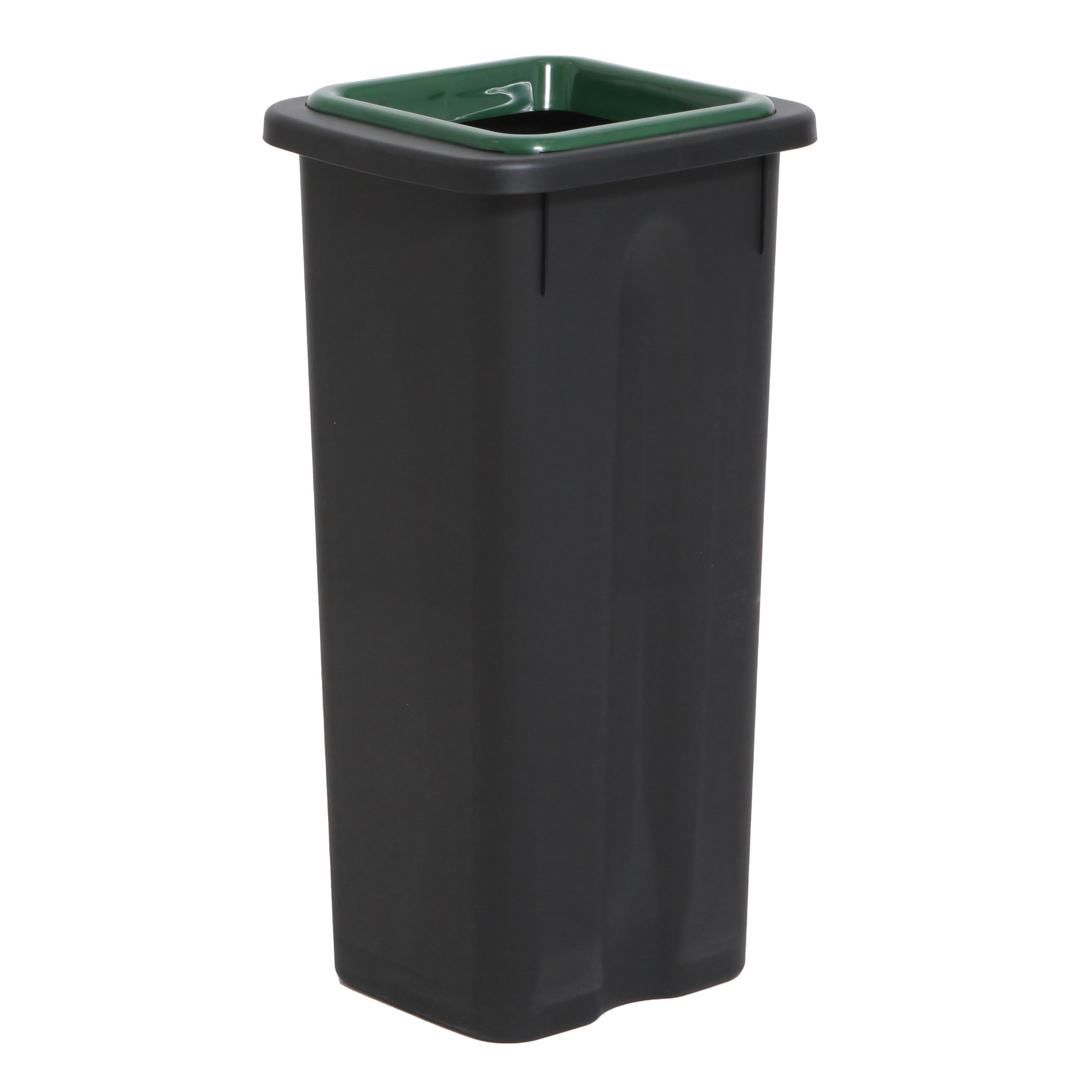 Dette sorteringssystem i svart, kraftig, 100% gjenbrukt plastik med en kapasitet på 3x20l og med lokk i blå, rød og grønn.