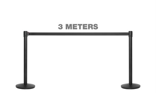 De ekstremt lange 3 meter, opptrekkelige bånd er en del lengere enn industristandarden, som er 2,3 meter. Dette betyr at med våres stolper holder det med at kjøpe 30% ferre stolper enn normalt.
