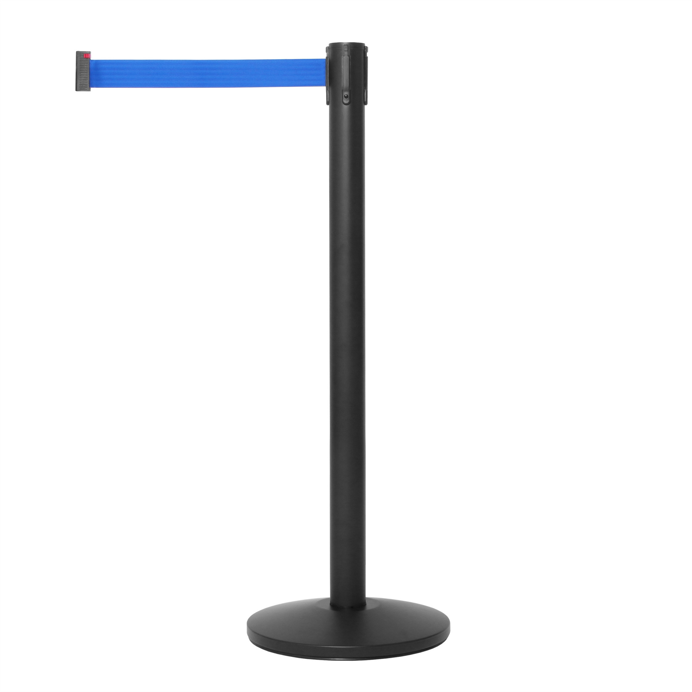 Svarte avsperringsstolper produsert i galvanisert stål med en tung og stabil betongfyllt fot med gulv beskyttelse.