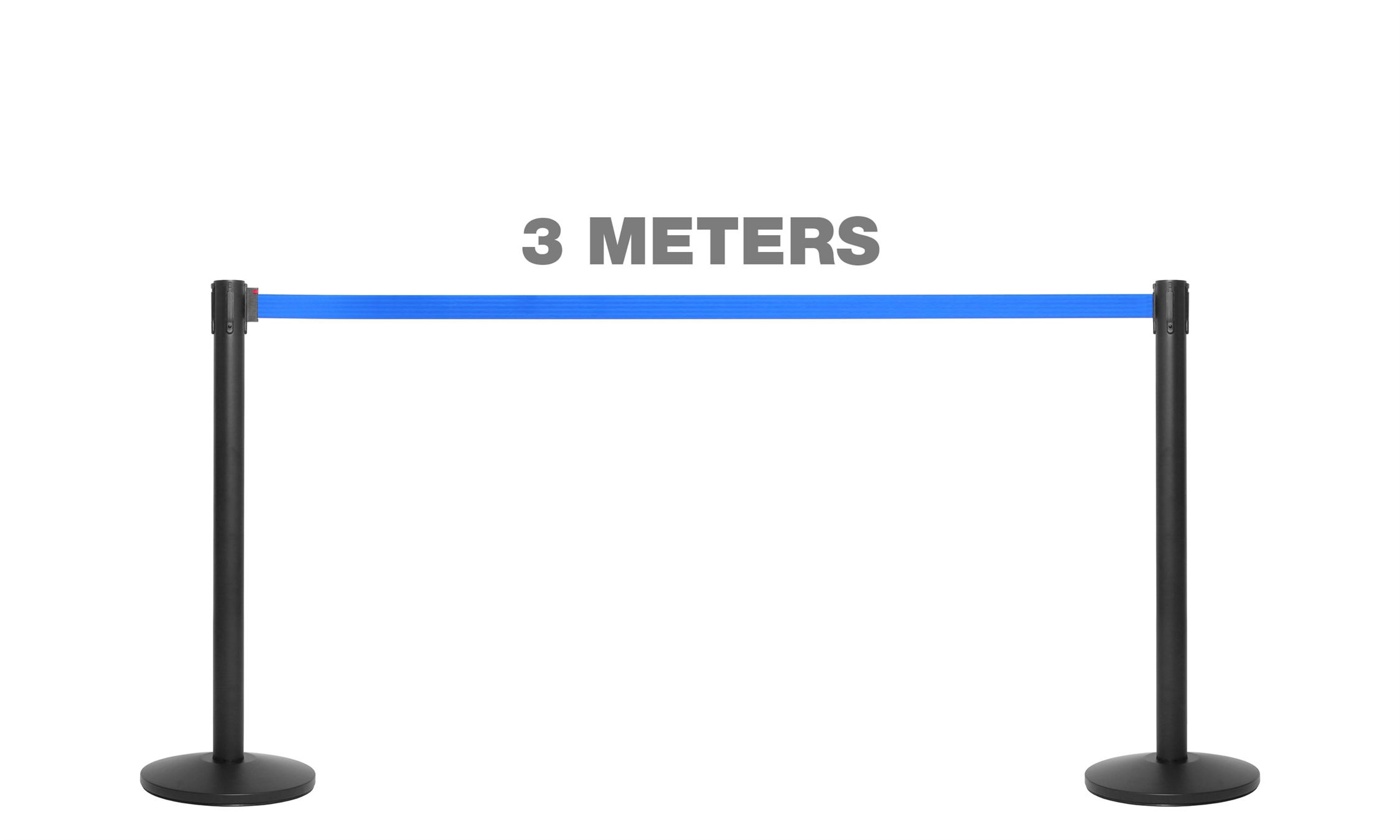 De ekstremt lange 3 meter, opptrekkelige bånd er en del lengere enn industristandarden, som er 2,3 meter. Dette betyr at med våres stolper holder det med at kjøpe 30% ferre stolper enn normalt.