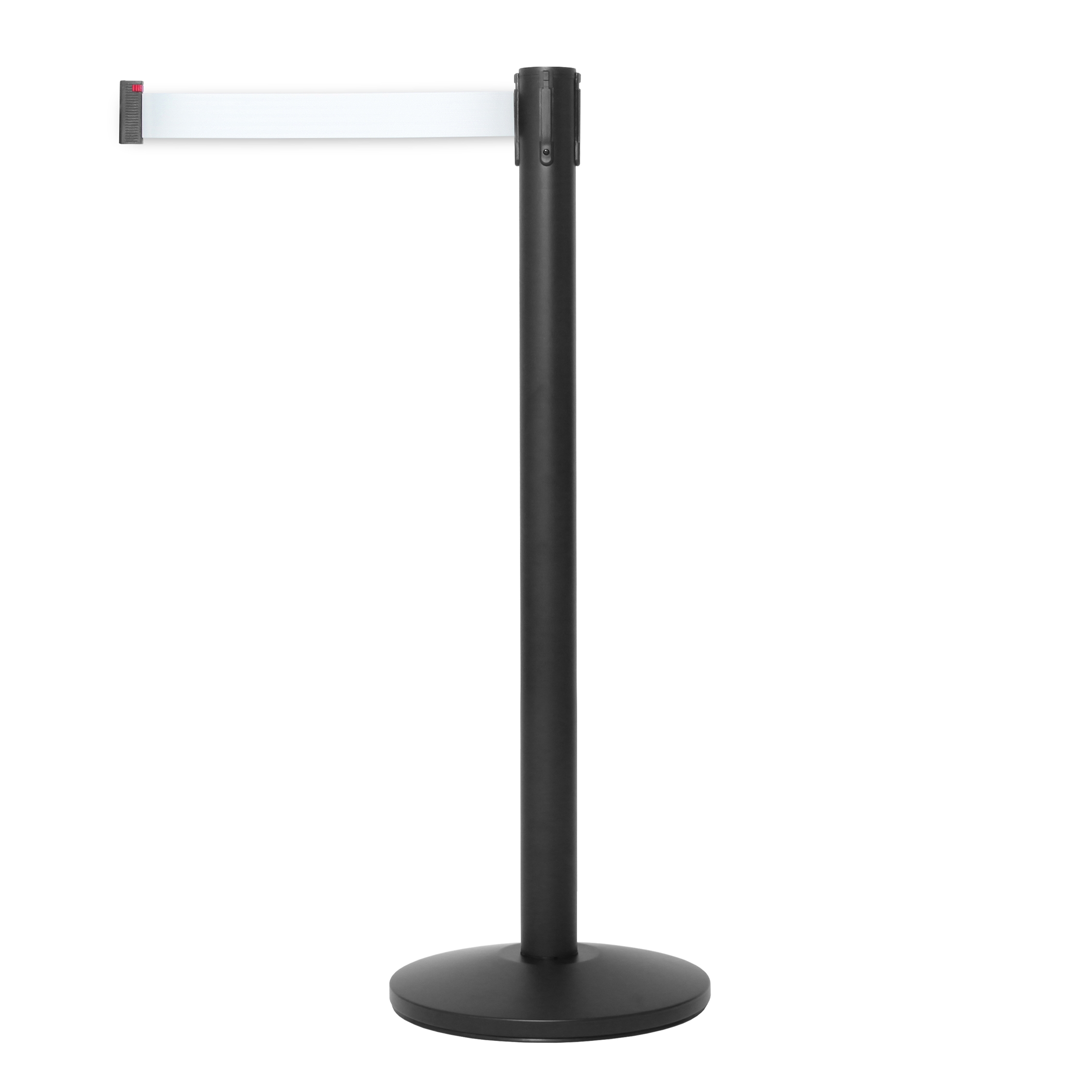 Svarte avsperringsstolper produsert i galvanisert stål med en tung og stabil betongfyllt fot med gulv beskyttelse.