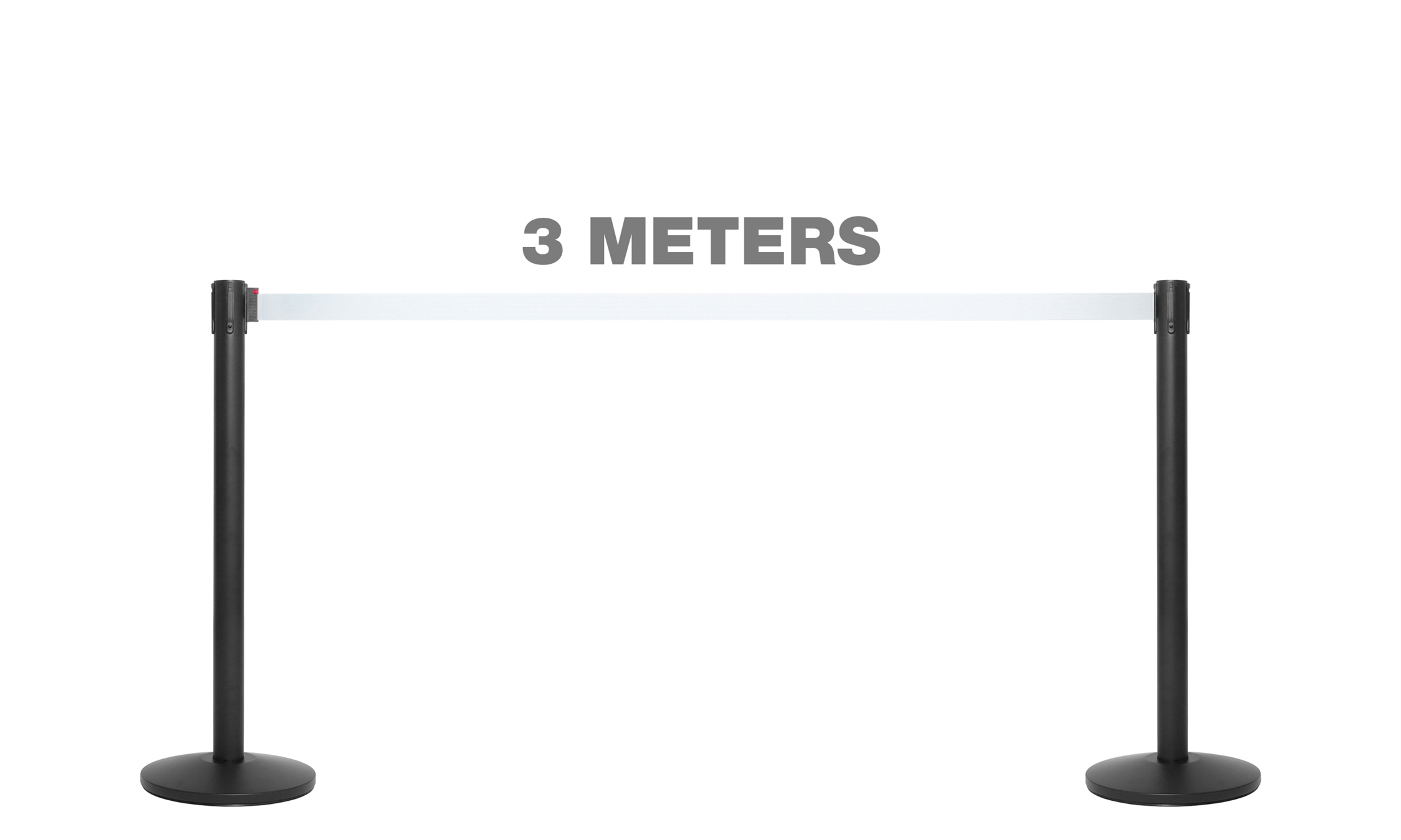 De ekstremt lange 3 meter, opptrekkelige bånd er en del lengere enn industristandarden, som er 2,3 meter. Dette betyr at med våres stolper holder det med at kjøpe 30% ferre stolper enn normalt.