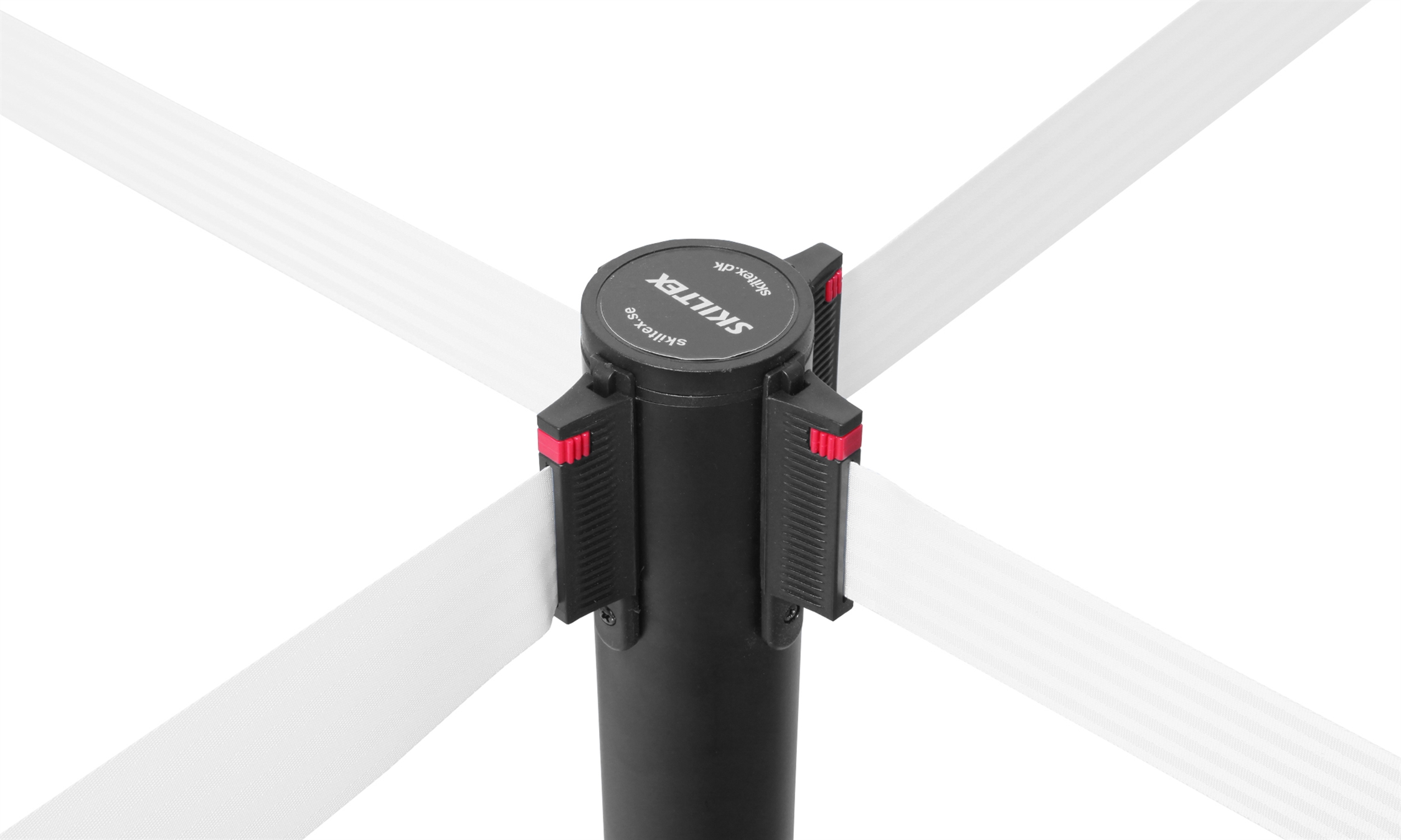 Båndene er utstyrt med en lås, som sikrer, at de sitter godt og fast på andre stolper. Skiltex avsperringsstolper har en universell bånd-lås, som passer til andre populære avsperringstolpe-brands – med garanti.