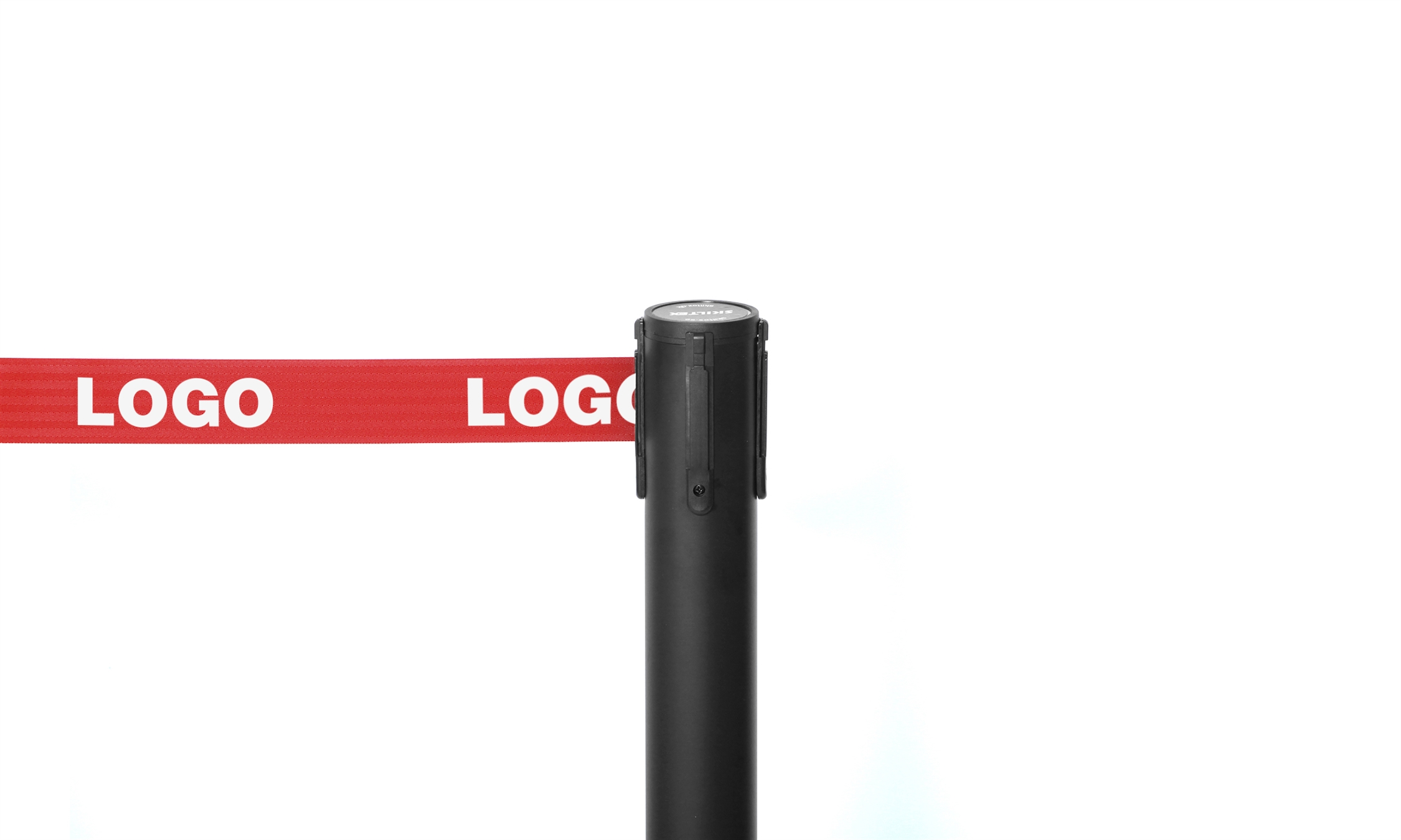 Svart avsperringsstolpe med rødt bånd - Inkl. logo print