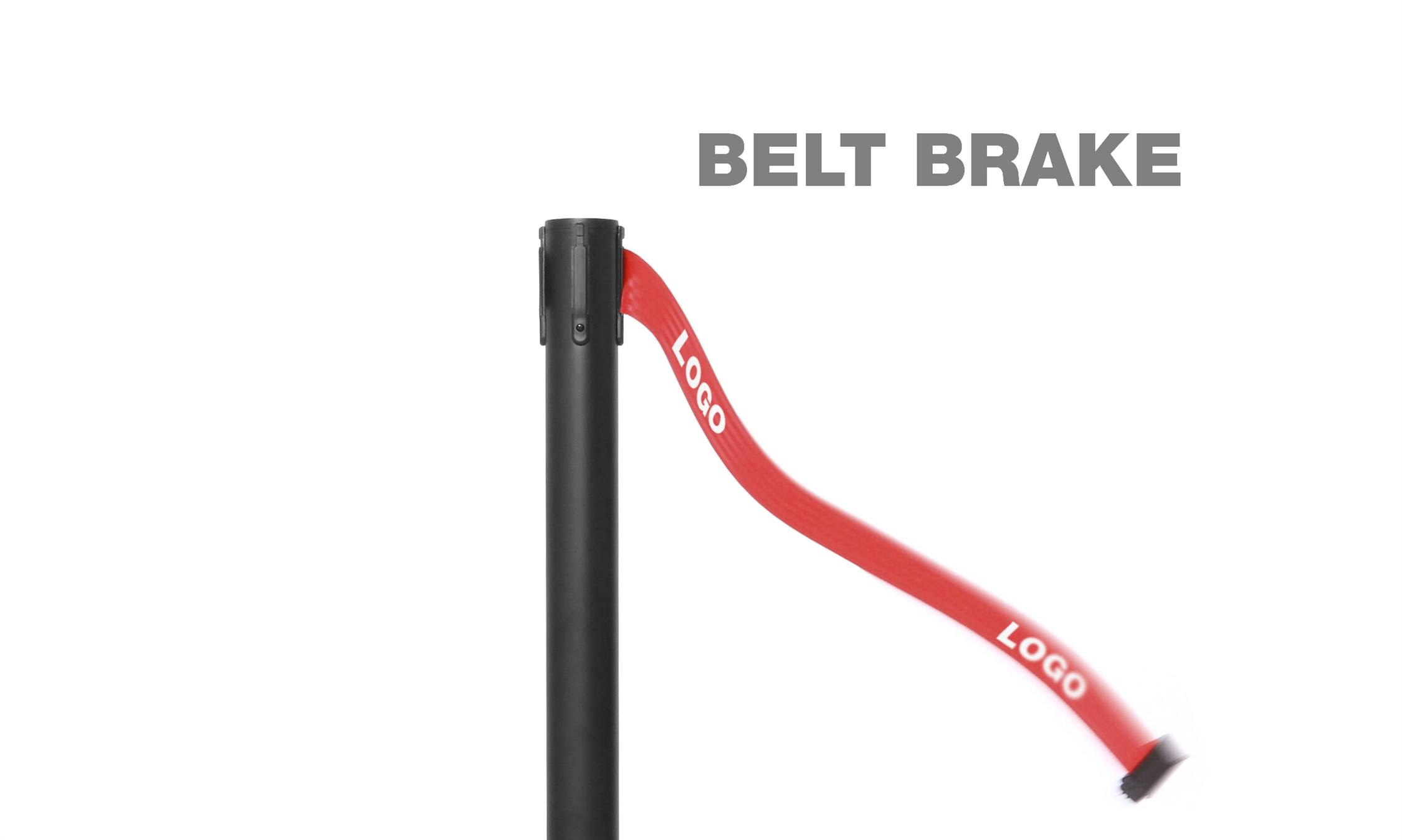 Disse kø-ledere har et avansert sikkerhetsbremsesystem – Dette betyr at hvis båndet blir tapt, så faller det ned på gulvet og trekker seg langsomt tilbake inn i spolen.