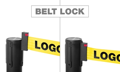 Bånden er utstyrt med en lås, som sikrer, at de sitter godt og fast på andre stolper. Skiltex avsperringsstolper har en universell bånd-lås, som passer til andre populære avsperringstolpe-brands – med garanti.
