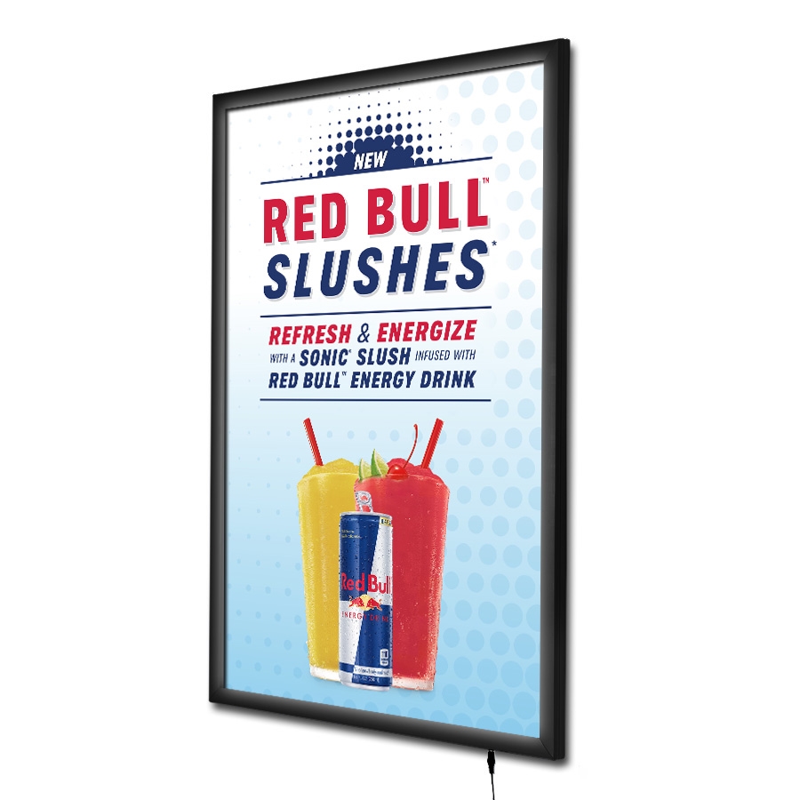 Våre svarte LED Klikkrammer bruker opptil 60 % mindre strøm enn lysbokser med lysstoffrør.