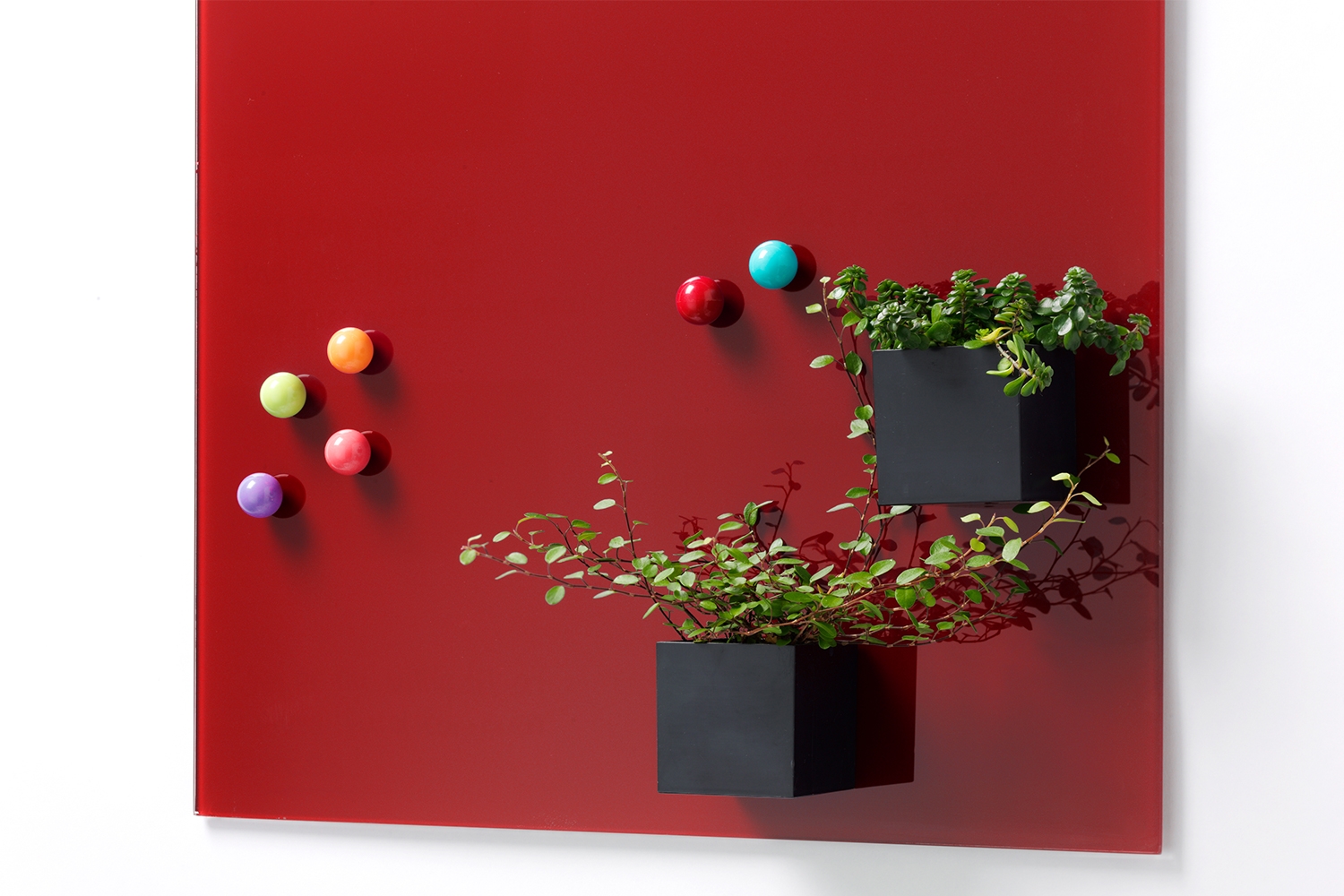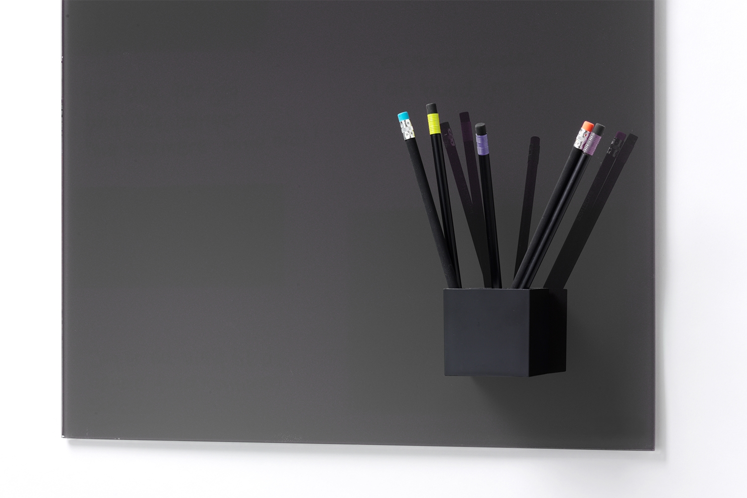 Svart magnetisk eske (6 x 6 x 6 cm) til glasstavler. Smart liten holder til både tusjer, planter, og hva du ellers kunne finne på at pynte din glasstavle med. Passer helt perfekt til glasstavler, men kan brukes på de fleste magnetiske overflater.