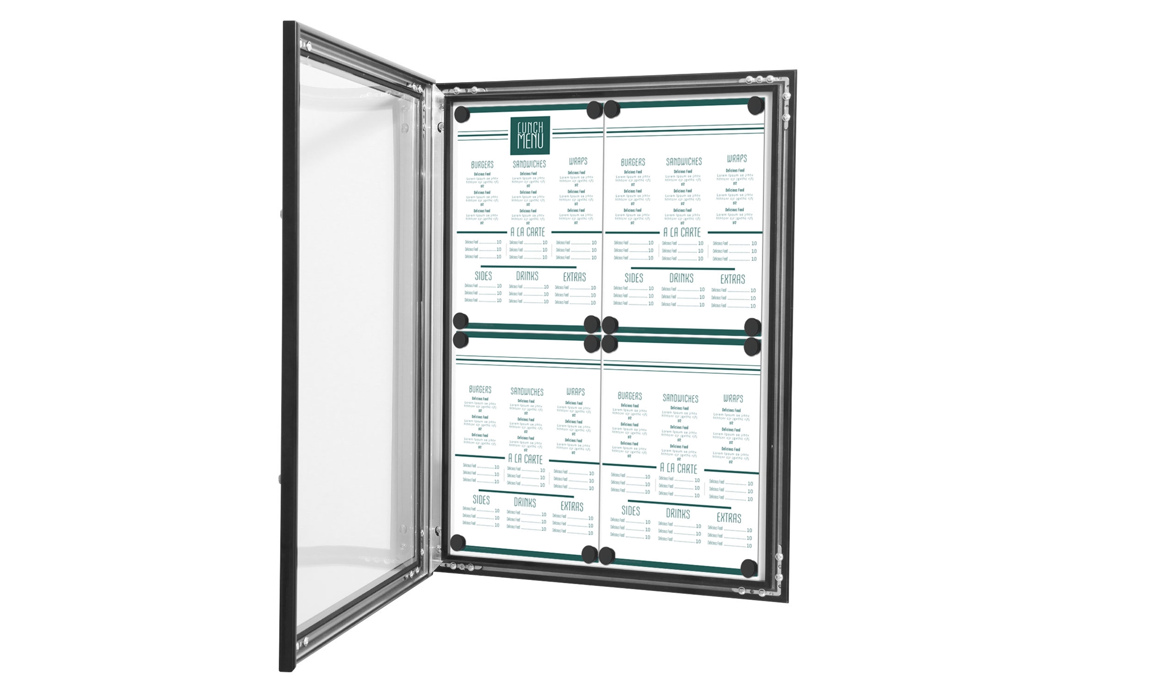 Dette magnetiske menyskap er perfekt kommunikasjonsverktøy som hjelper med at offentliggjøre reklamer, menyer og viktige opplysninger i en bred rekke av virksomheter.
