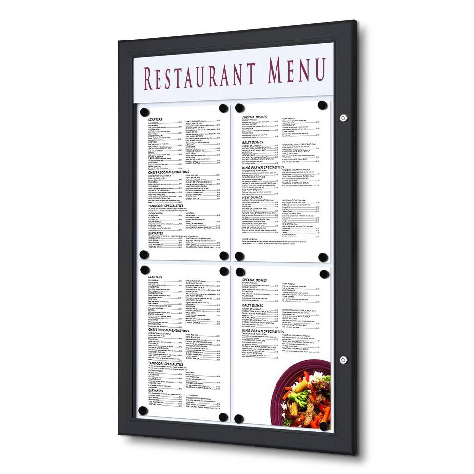 Svart outdoor magnetisk menyskap med logo topp - 4xA4