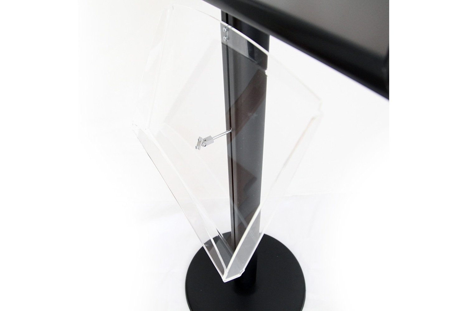Denne svart ProStand leveres med en klikkramme og en akryl brosjyreholder til 2 x A4 eller 1 x A3.