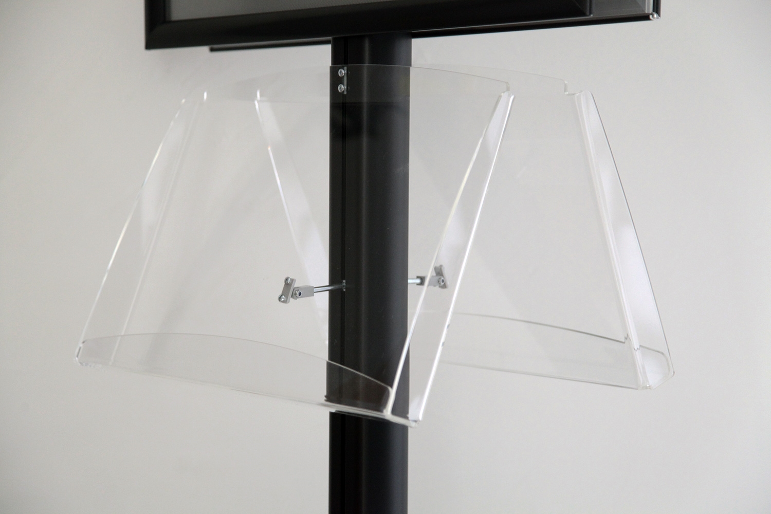 Disse svarte stativer leveres med 2 stk klikkrammer og 2 stk akryl brosjyreholdere til 4 x A4 eller 2 x A3.