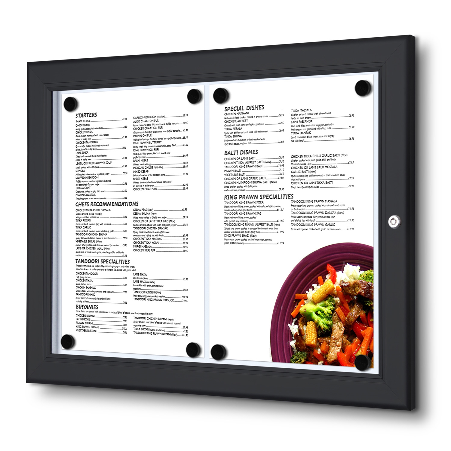 Svart utendørs magnetisk meny skap med LED lys - 2xA4