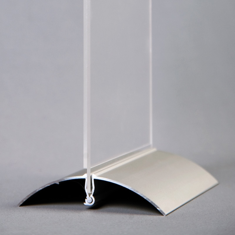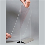 Classy menyholder med en glassklar akryl topp og stilren alu-fot med fjærlukking. Aluminiumfoten er egnet til logo print. Vi har høyformat swingwing menyholdere i alle 5 populære størrelser; A7, A6, A5, A4 og M65.