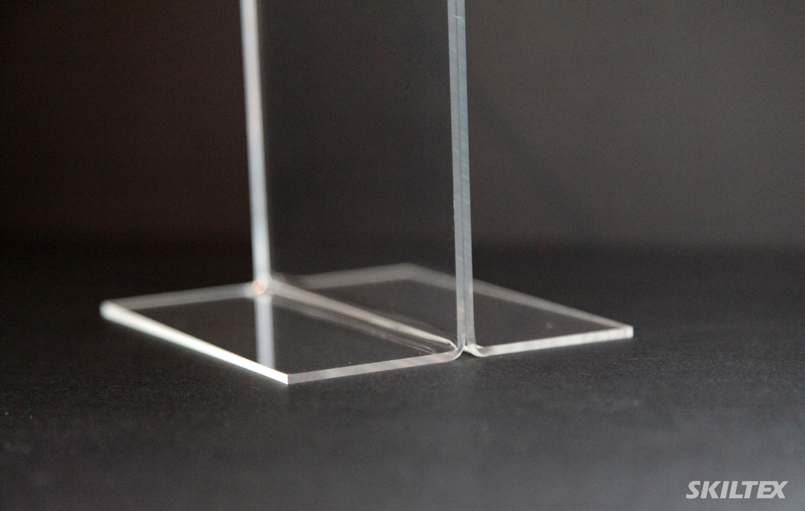 Disse frittstående akrylskiltene er omvendt T-formede og egner seg for både enkelt- og dobbeltsidig bruk, da skiltene står horisontalt.