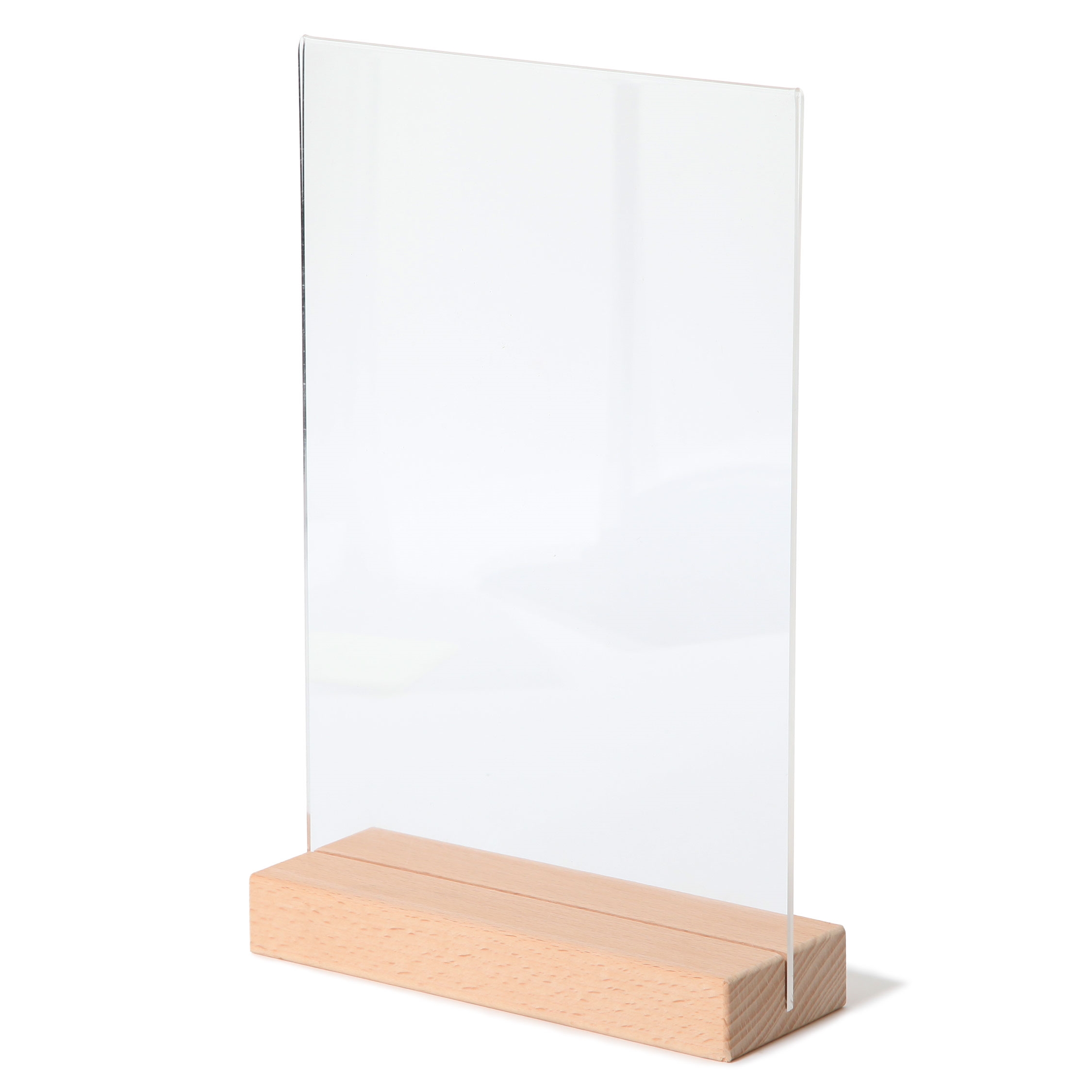 T-Stand Høyformat Akrylskilt med Trebunn - A4