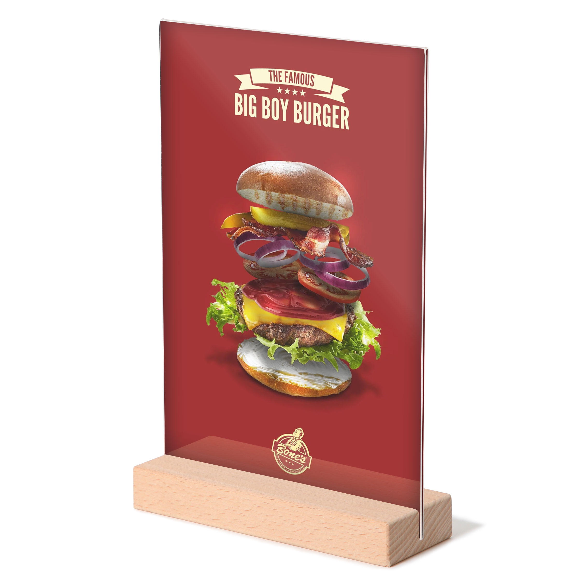 T-Stand Høyformat Akrylskilt med Trebunn