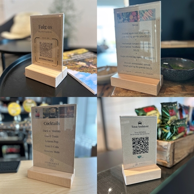 Disse T-stativene med trebunn er ideelle for å presentere menyer, tilbud eller annonser på en elegant måte. Den robuste bøketrefot kombinerer funksjonalitet og estetikk, noe som gjør dem perfekte for bruk i kafeer, restauranter, hoteller og kantiner.
