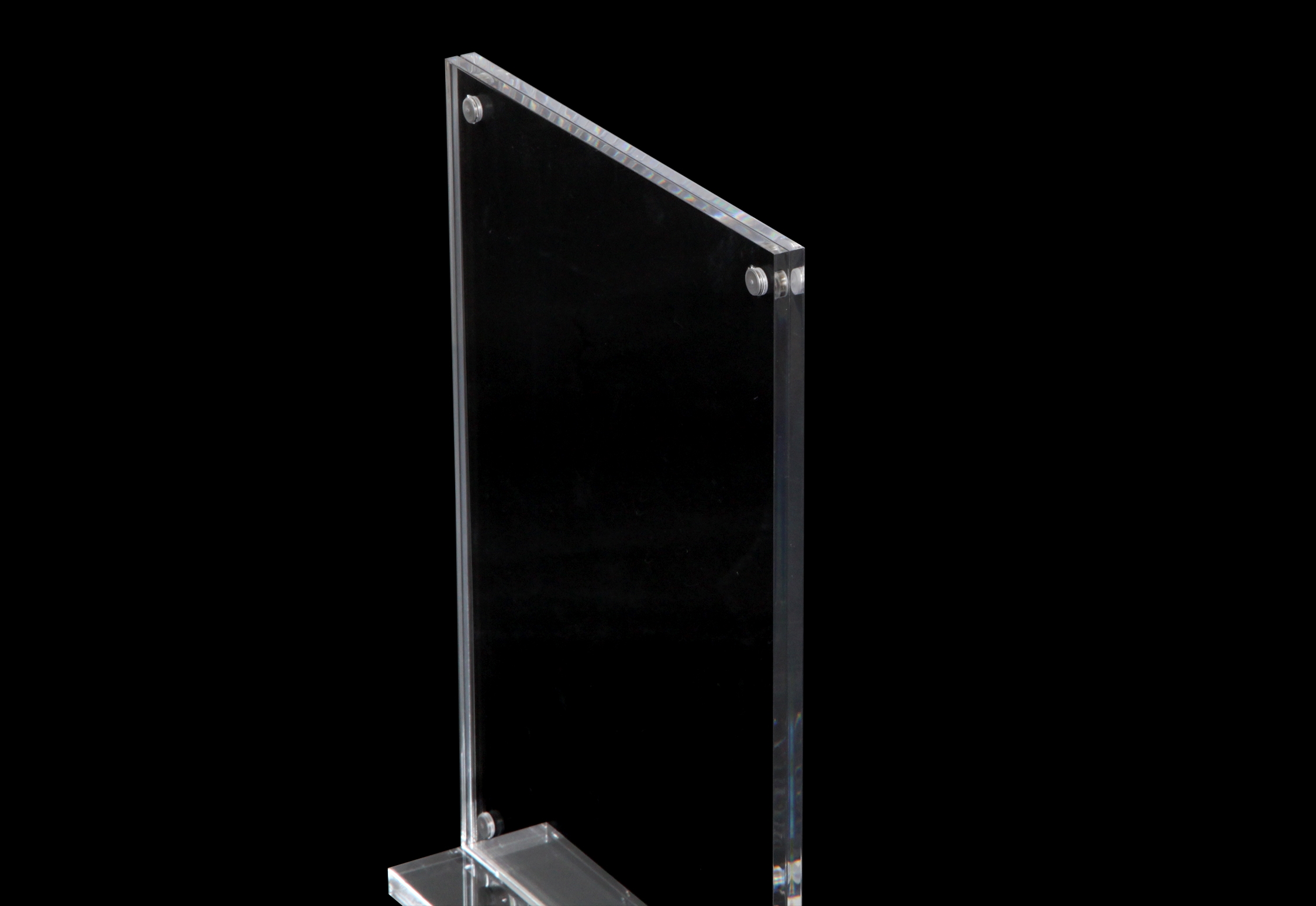 Magnetisk gjennomsiktig T-stativ skiltholder laget av krystallklar akryl, som kan brukes som luksusskiltholder eller menykort, informasjon om priser eller til og med som en eksklusiv fotoholder.