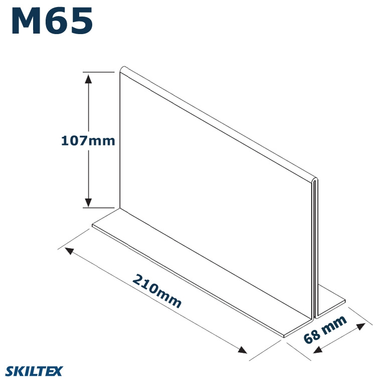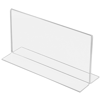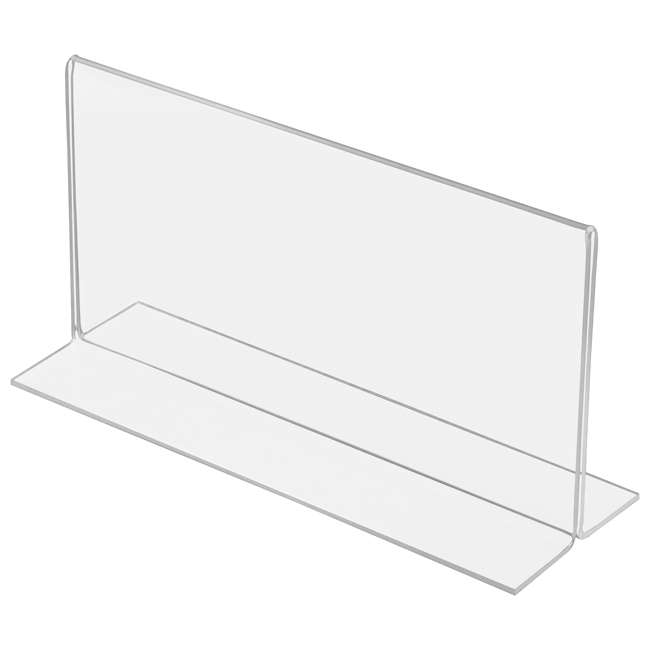 Vi har bredformat T-stand akrylholdere i 7 forskjellige størrelser, som alle er laget av krystallklar akryl og står meget stabilt.