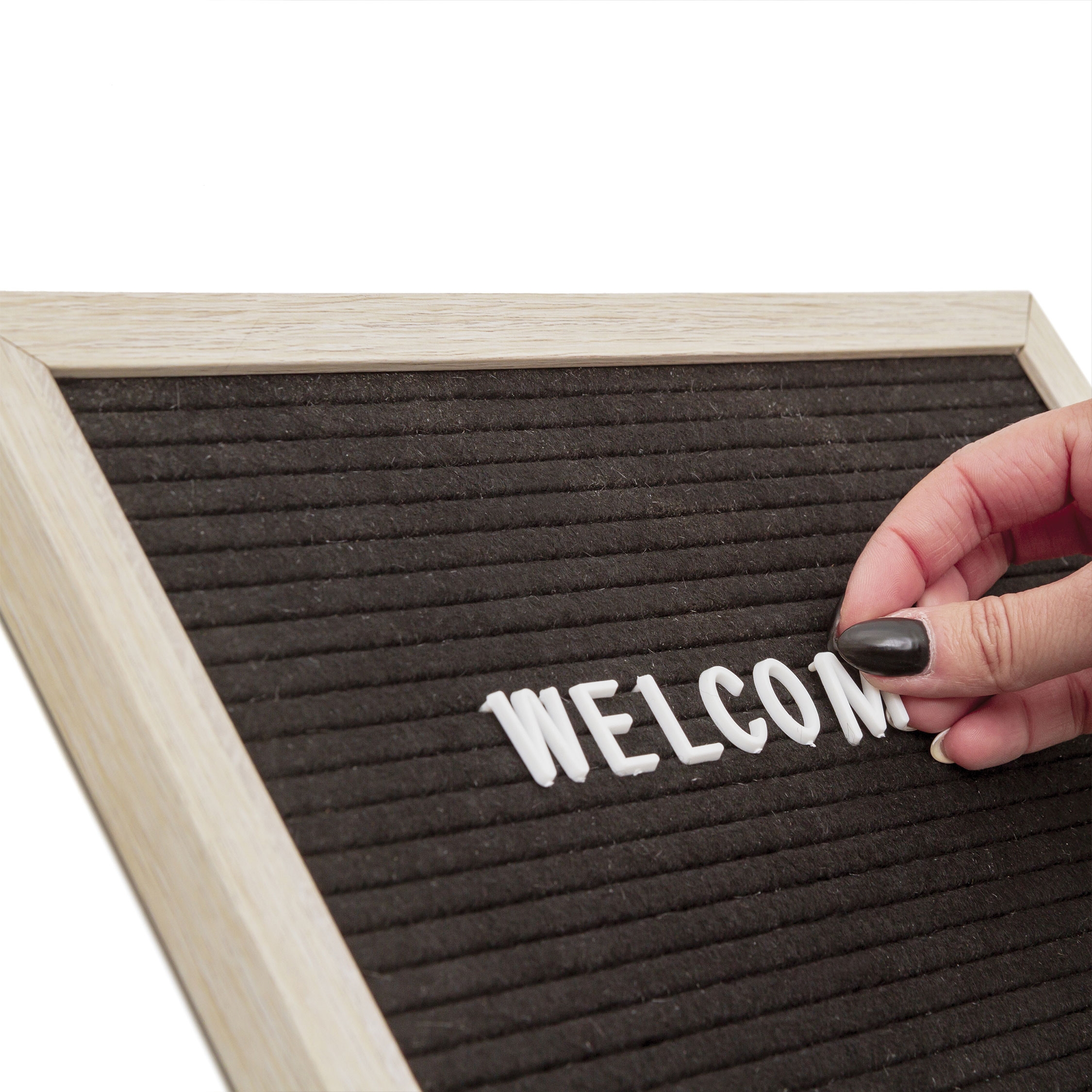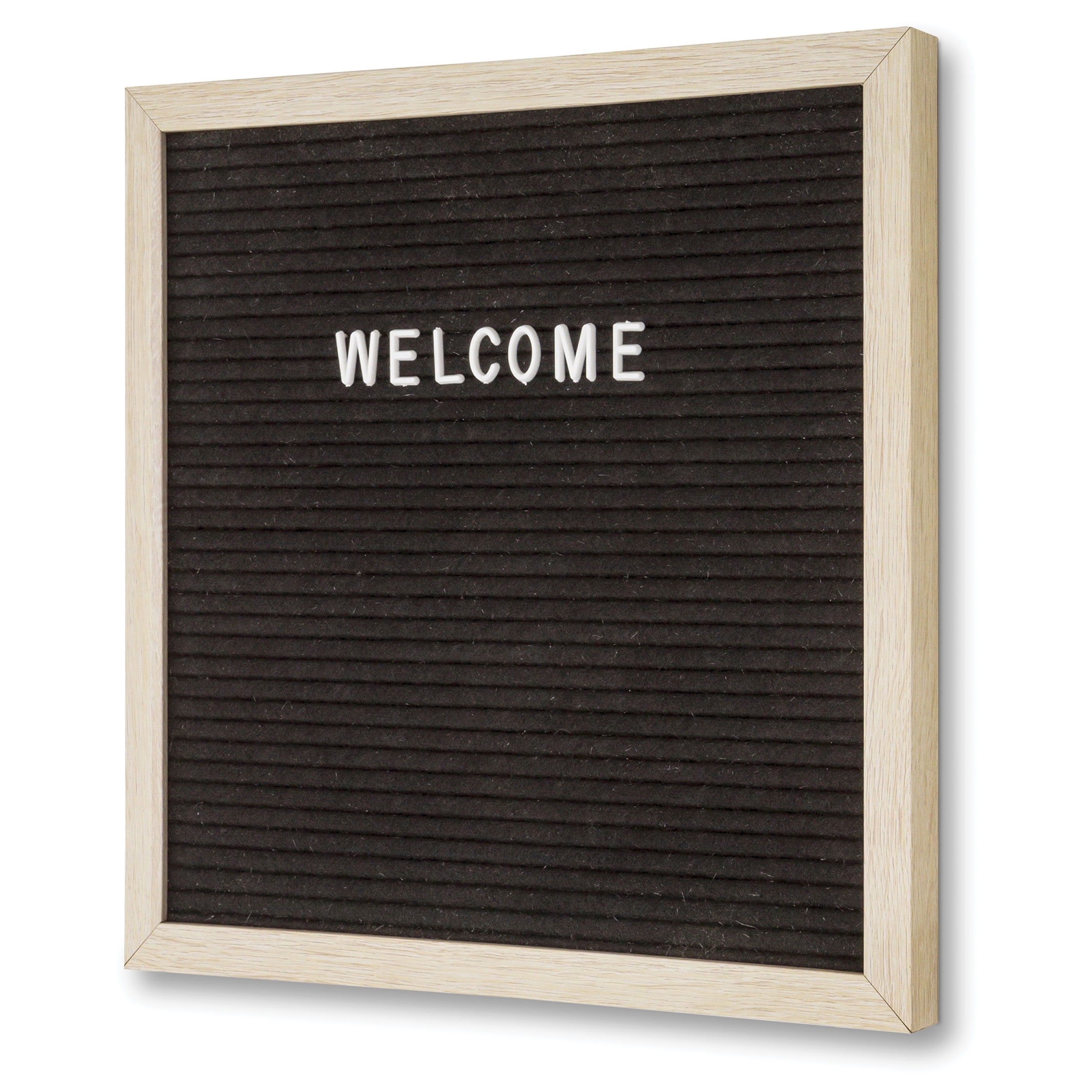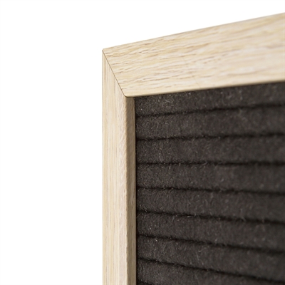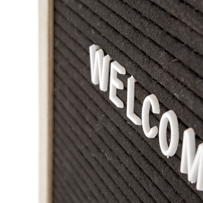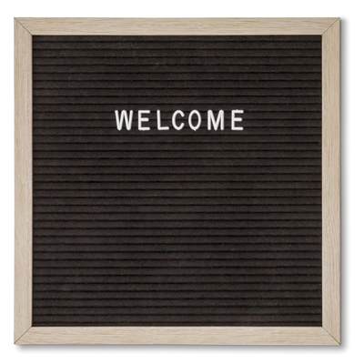 Vår Teak bokstavtavle er en vintage og stilfull design-tavle med en lysebrun ramme og svart filt-overflate. Tavlen leveres med 330 hvite plastbokstaver og 120 tall. Bokstavene er enkle å montere og justere, noe som gjør det veldig enkelt å oppdatere. Den spesielle overflaten holder de hvite plastbokstavene på plass.