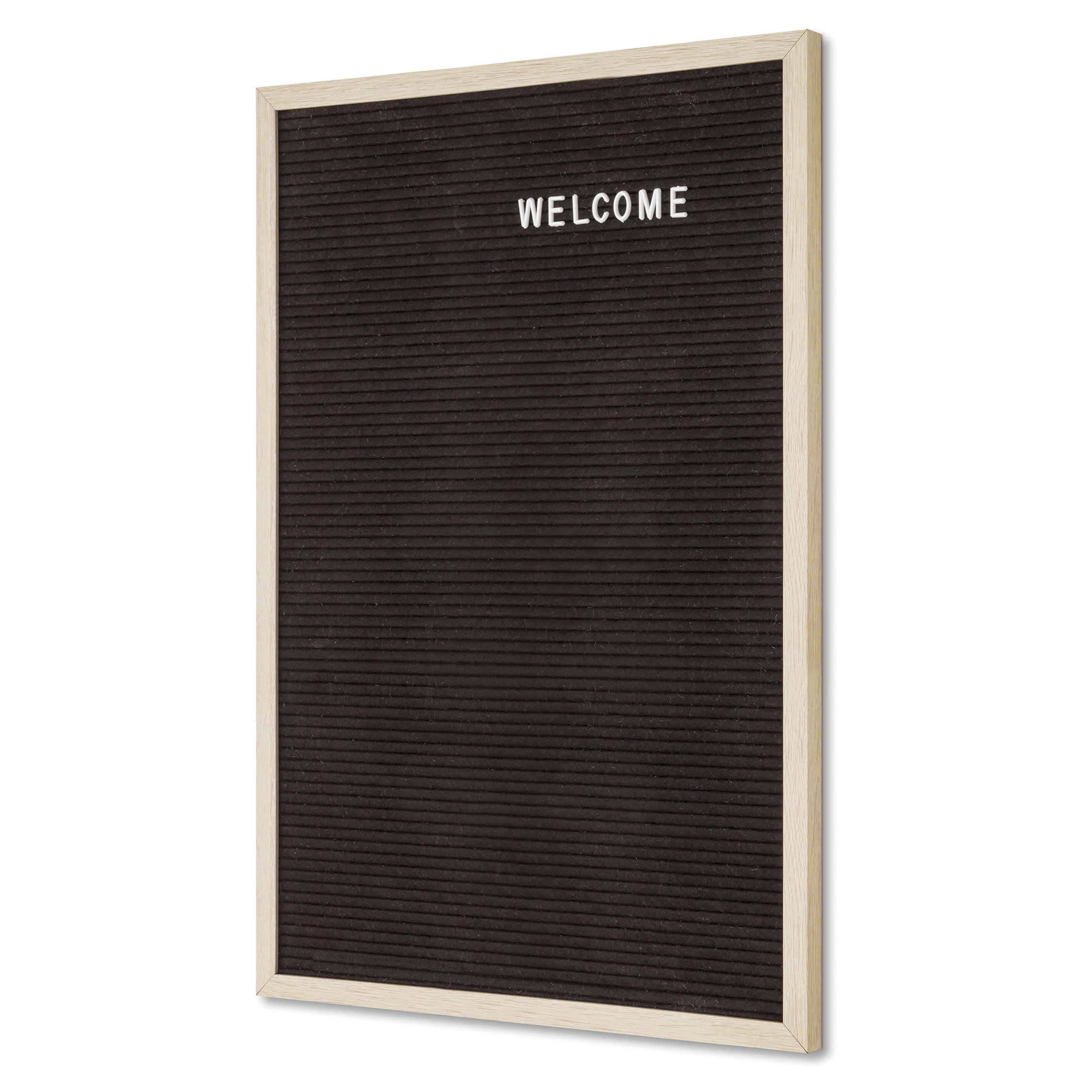 Klassisk Letter Board i stilrent design med sort filt og ramme i lyst teaktre. Skap synlig og elegant kommunikasjon med et moderne vintage-uttrykk!