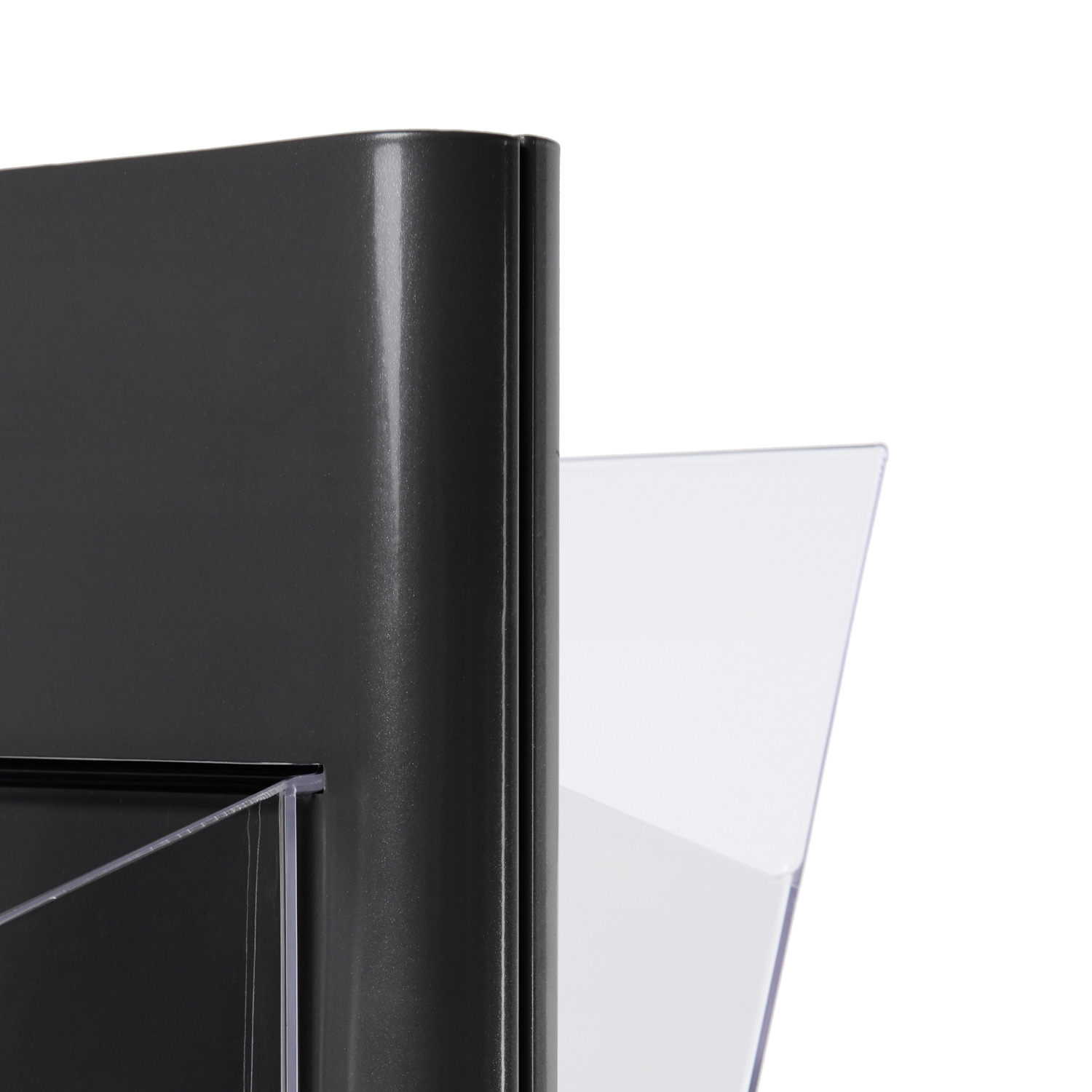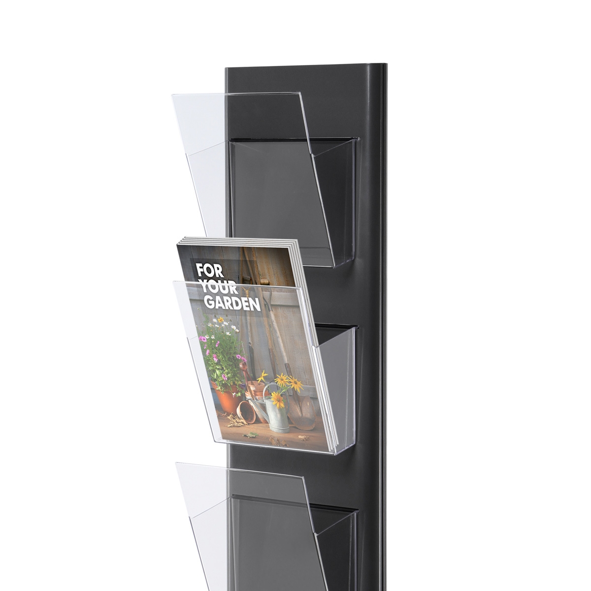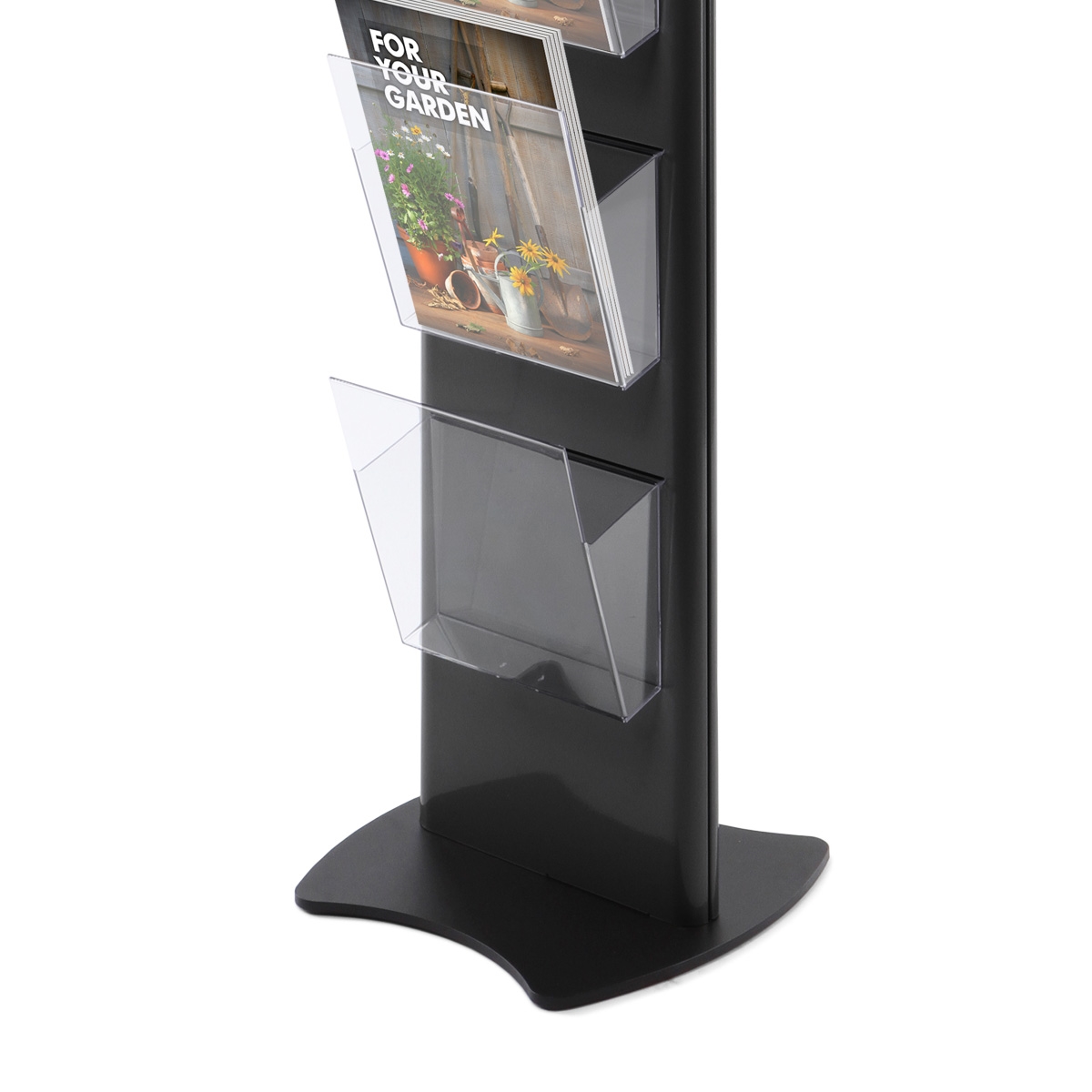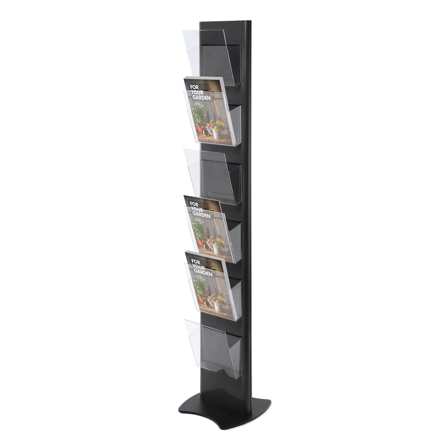 Svart lakkert stål brosjyrestativ med 6 akryl lommer til A4 brosjyrer.