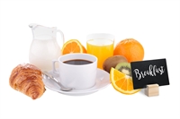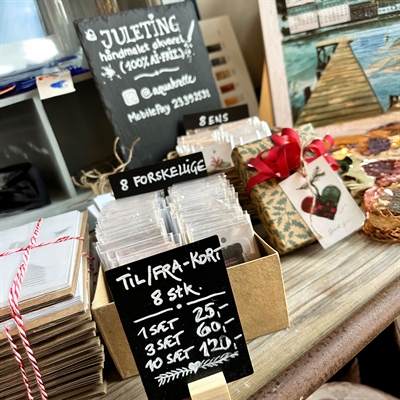 Pakke med 6 små treklossskiltholdere i vakkert teak, samt 6 fleksible tavleskilt i A7 størrelse (74 x 105 mm).