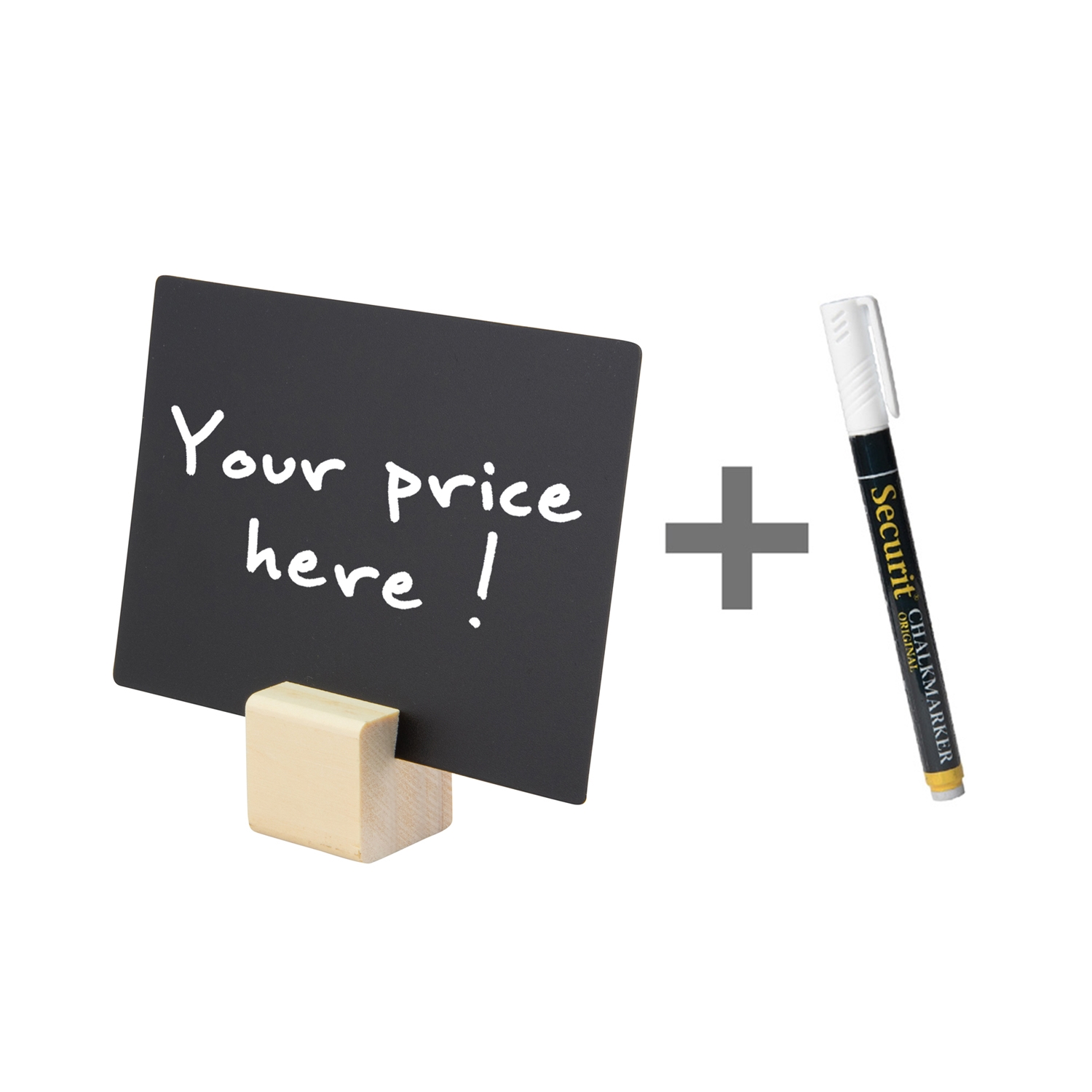 Klossene har et lite hakk øverst, hvor tavleskiltene lett skyves eller settes i. Det følger med en hvit kritttusj (1-2mm).