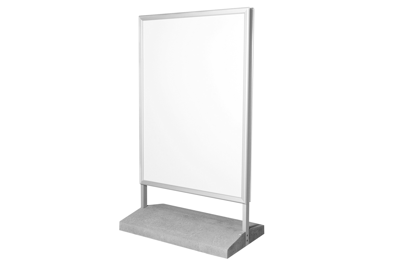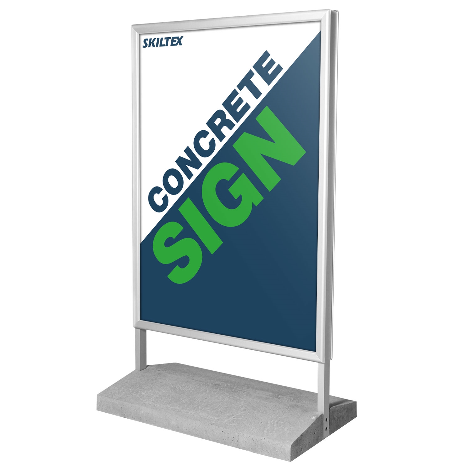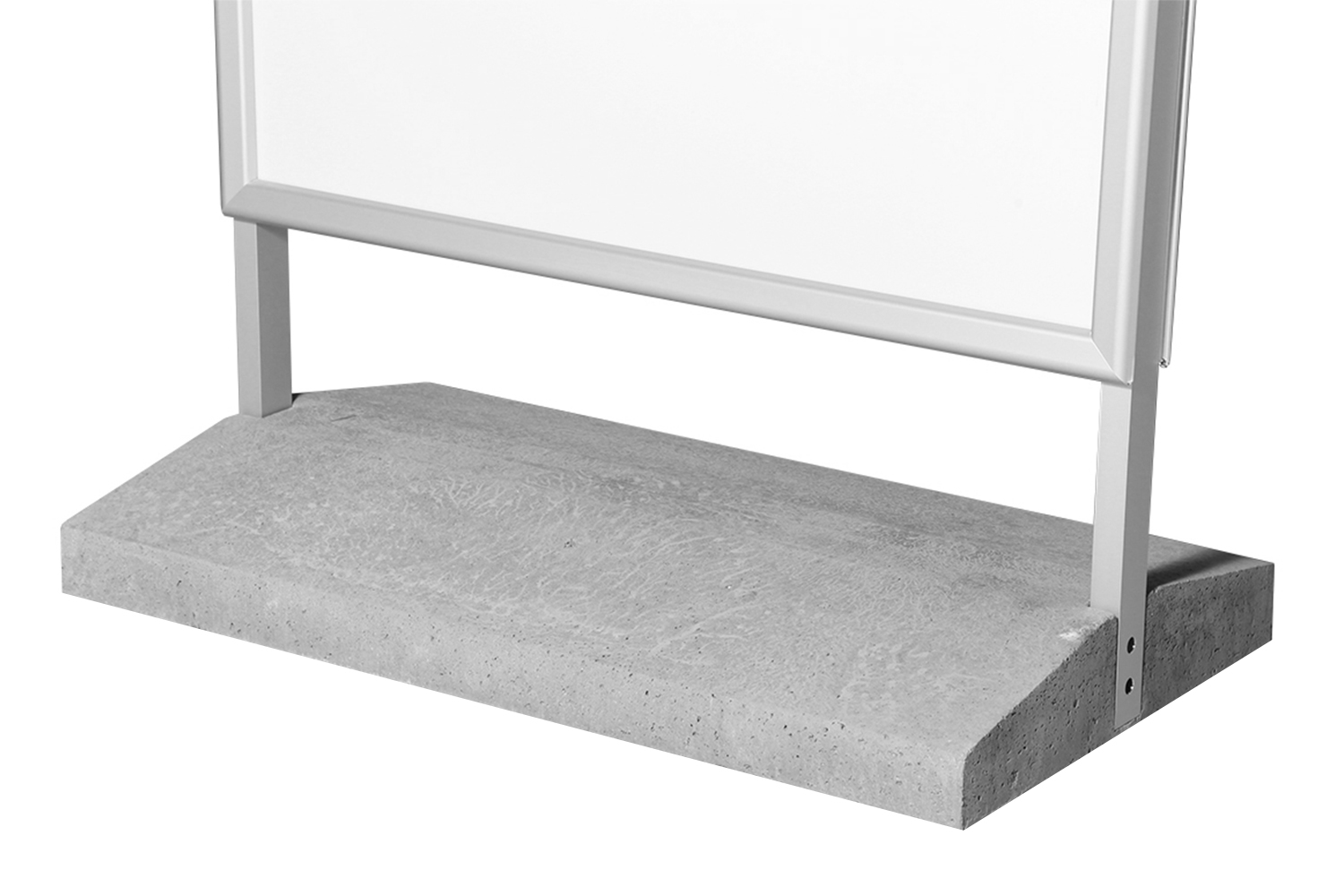 Tungt utendørsskilt med særdeles kraftig betongfot