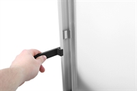 Plakatene sitter helt avsikret i en sikkerhetsramme med 42 mm aluminiumsprofiler på begge sider. Rammene er dermed helt innbruddssikre. Det er imidlertid likevel ganske enkelt å skifte plakatene ved hjelp av det medfølgende nøkkelverktøyet.
