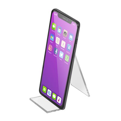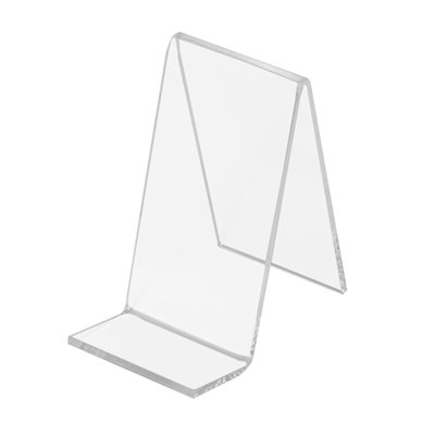 Universal akryl varestøtte produsert av 3,0 mm glassklar akryl med polerte kanter.
