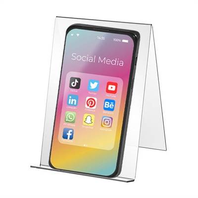 Universal akryl varestøtte produsert av 3,0 mm glassklar akryl med polerte kanter.